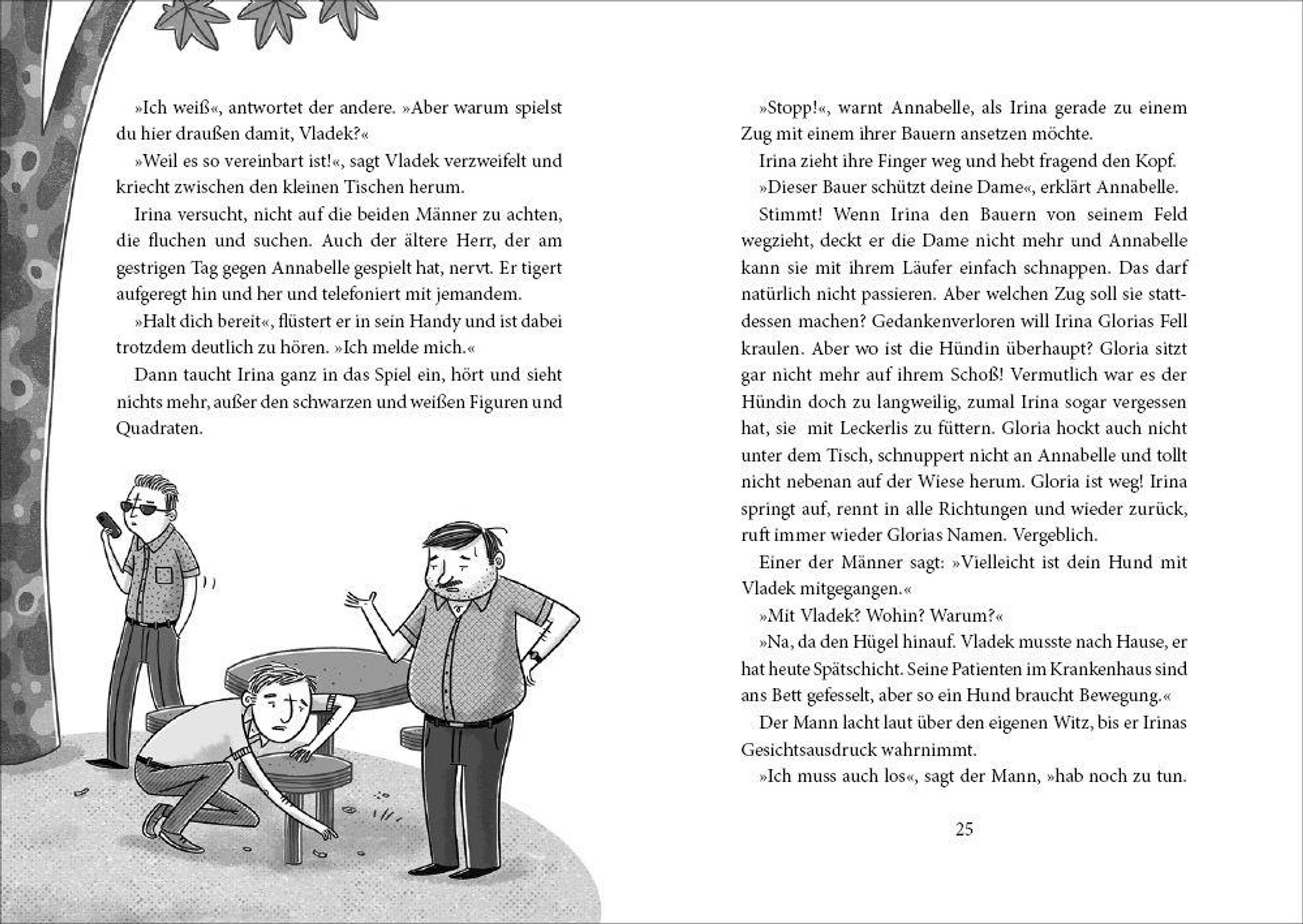 Irina trifft zusammen mit der Hündin Gloria auf eine Gruppe Schachspieler im Park und freundet sich mit Annabelle an. Kurz darauf passieren merkwürdige Dinge und die Schachspielerin verschwindet auf einmal spurlos. Sofort alarmiert Irina die Großstadtdetektive - und Deniz ist sicher: Annabelle wurde entführt! Doch es ist alles anders als es scheint ...