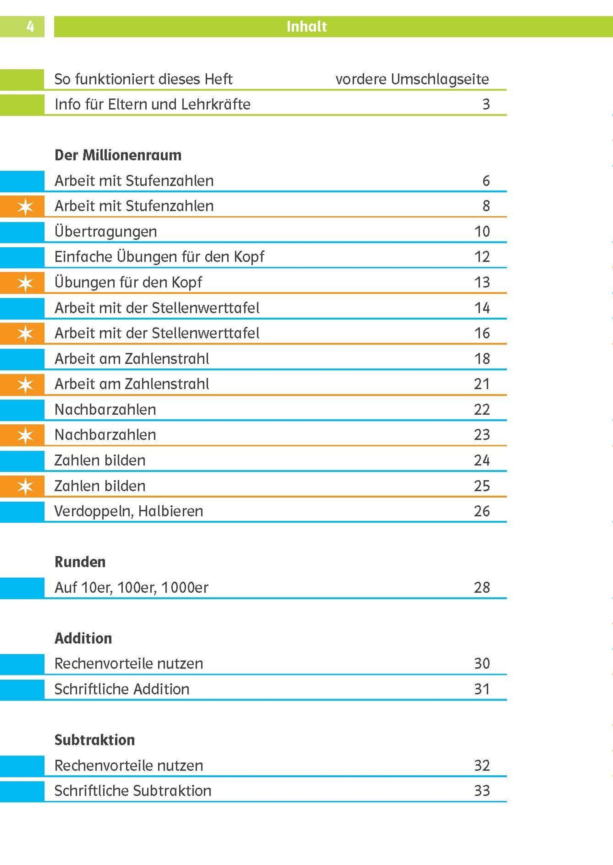 Diese Themen werden geübt: Orientieren und rechnen im Zahlenraum bis 1 000 000, Addition, Subtraktion, Multiplikation und Division, Runden, Kommazahlen, Umgang mit Nullen, Maßumwandlungen
