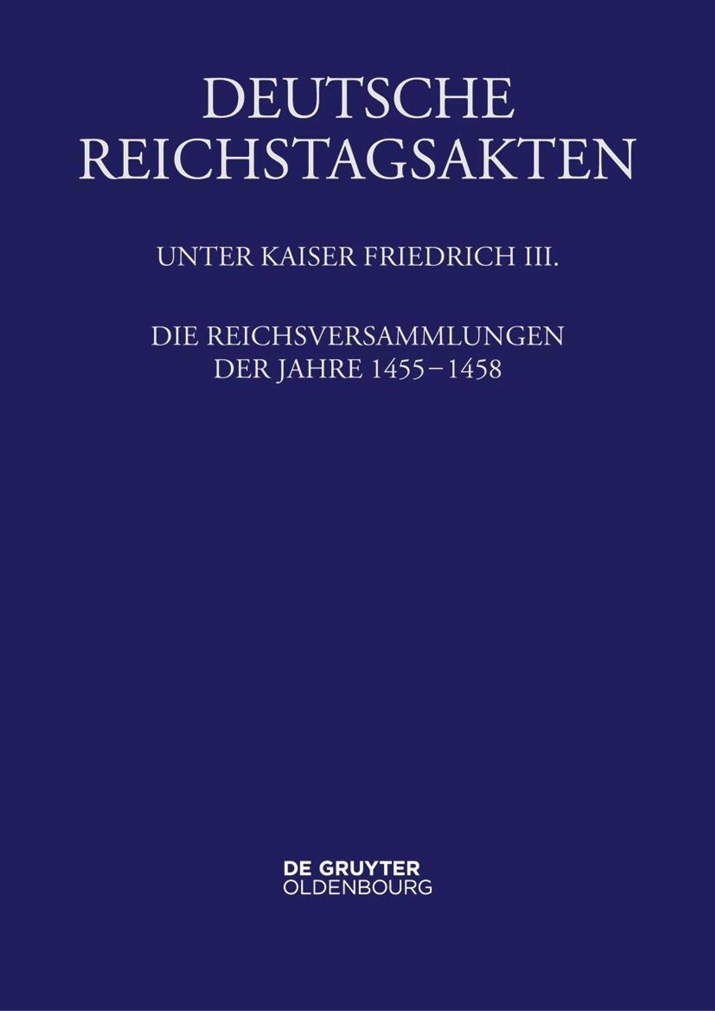 DEUTSCHE REICHSTAGSAKTEN. UNTER KAISER FRIEDRICH III. DIE REICHSVERSAMMLUNGEN DER JAHRE 1455–1458. DE GRUYTER OLDENBOURG. Dunkelblauer Hintergrund., Buch