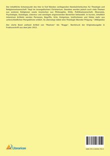 Der inhaltliche Schwerpunkt des hier in fünf Bänden vorliegenden Handwörterbuches für Theologie und Religionswissenschaft "liegt im (evangelischen) Christentum. Daneben werden jedoch auch viele Themen aus anderen Religionen sowie inzwischen aus Philosophie, Ethik, Politikwissenschaft, Ökonomie, Psychologie, Soziologie, Literatur und sonstigen angrenzenden Bereichen behandelt. In kurzen, inhaltlich intensiven Artikeln werden Personen, Begriffe, Orte, Ereignisse, Institutionen und Vieles mehr aus unterschiedlichen Perspektiven erklärt. Es überwiegt dabei eine Theologie liberaler Prägung." (Wikipedia) Der vierte Band umfasst Artikel von "Maatzen" bis "Rogge". Nachdruck der Originalausgabe in Frakturschrift aus dem Jahr 1913.