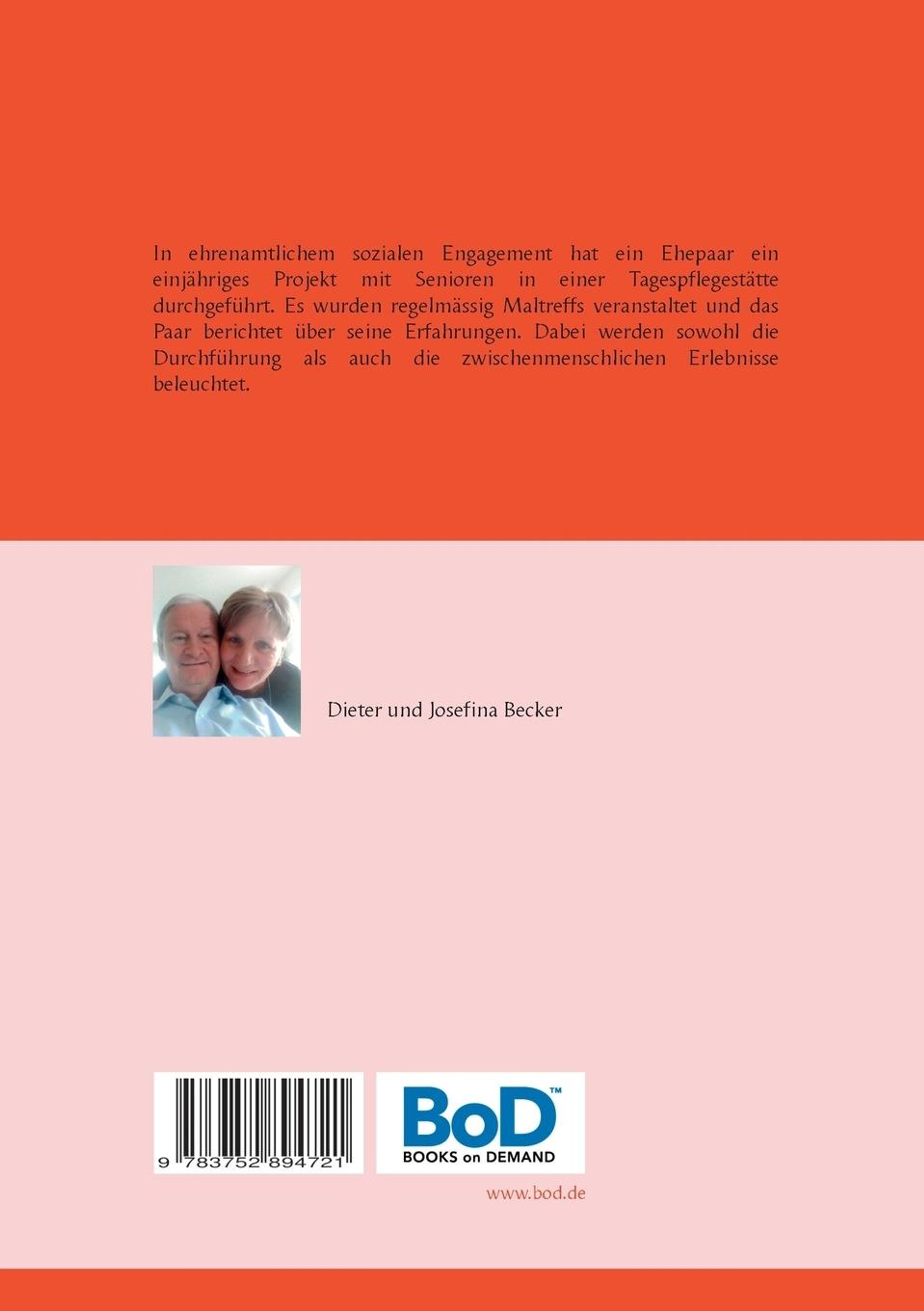 Ein Ehepaar berichtet über die ehrenamtliche Betreuung von Senioren in einer Tagesstätte. Sie führen Malstunden in ganzheitlicher Weise durch und zeigen auf, womit sie sich in den Maltreffs beschäftigt haben. Einfühlsam werden dabei auch die besonderen Anforderungen der alten Menschen in schwierigen als auch lustigen Situationen aufgezeigt. Der eher durchführungstechnische Teil wird von ihm, der zwischenmenschlich sensible Teil von ihr erzählt.