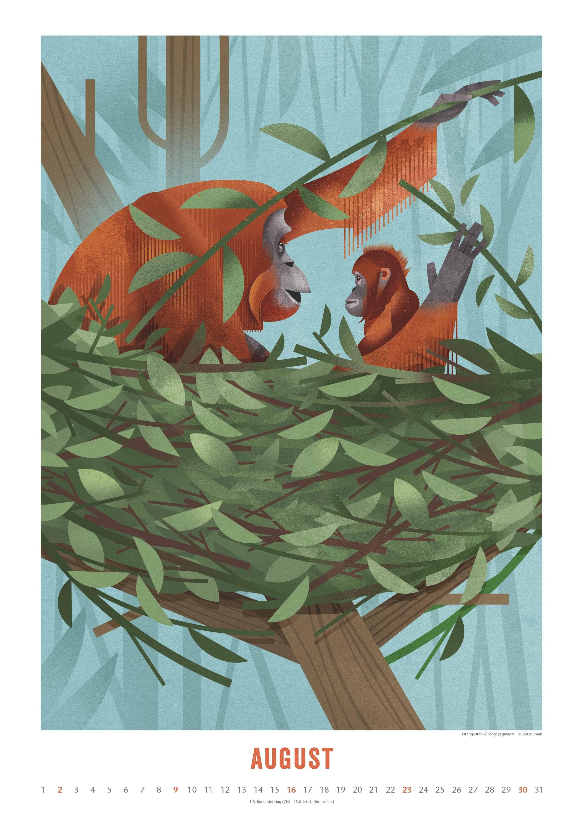 12 plakative Tier-Illustrationen von Dieter Braun, inspiriert von Wildtieren in freier Natur