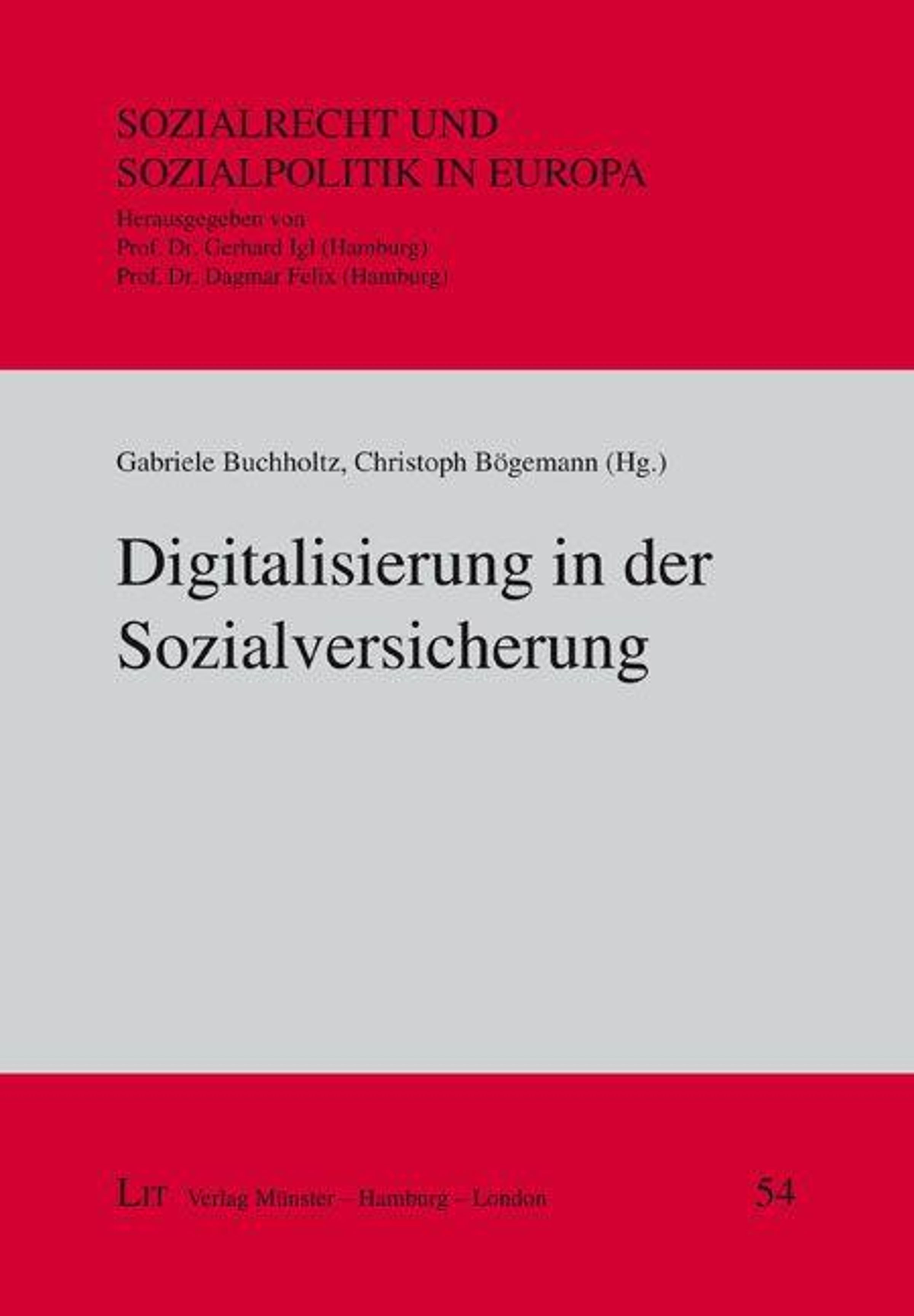 Titel: Digitalisierung in der Sozialversicherung. Herausgeber: Gabriele Buchholtz, Christoph Bögemann., Buch