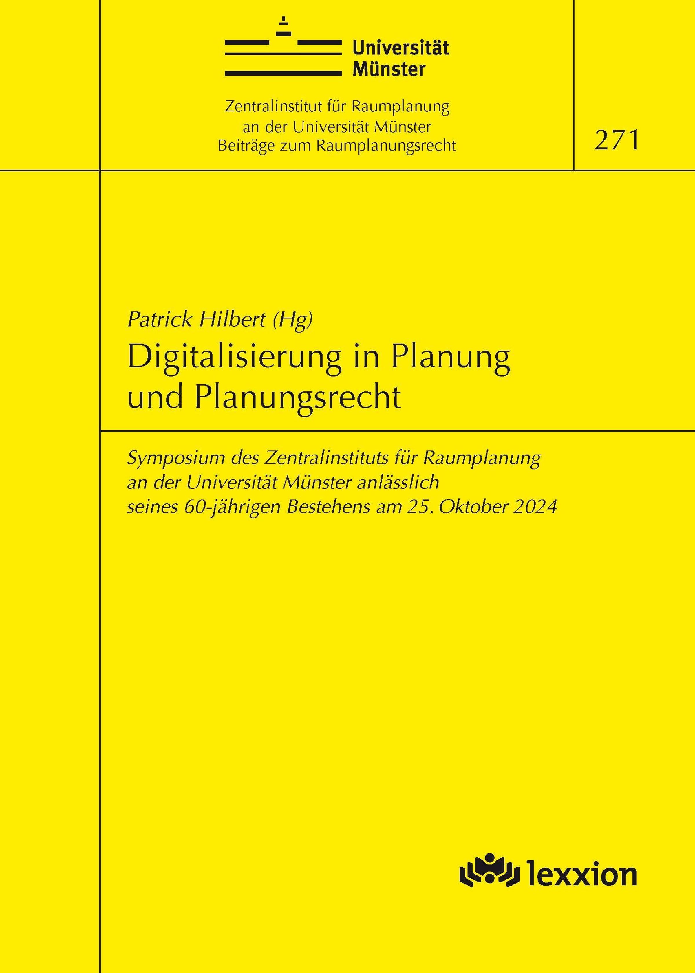 Im Jahr 2024 durfte das Zentralinstitut für Raumplanung an der Universität Münster - Forschungsinstitut für deutsches und europäisches Öffentliches Recht - sein sechzigjähriges Bestehen begehen. Das Forschungsinstitut wird von der Deutschen Akademie für Städtebau und Landesplanung (DASL) getragen und institutionell gefördert vom Bund und vom Land Nordrhein-Westfalen. Anlässlich dieses Jubiläums veranstaltete das Institut unter der Schirmfrauschaft der Bundesministerin für Wohnen, Stadtentwicklung und Bauwesen und der Ministerin für Wirtschaft, Industrie, Klimaschutz und Energie des Landes Nordrhein-Westfalen ein Symposium zum Thema "Digitalisierung in Planung und Planungsrecht". Die digitale Entwicklung transformiert sämtliche Lebensbereiche und hat folglich auch in die Planung und das Planungsrecht Einzug gehalten. So soll eine digitale Öffentlichkeitsbeteiligung auch der Verfahrens- beschleunigung dienen. Der Einsatz von Künstlicher Intelligenz schafft neue Potenziale für planende Stellen, z. B. in der Smart City, und bildet eine wichtige Grundlage für Abwägungsentscheidungen. Das Institut blickt mit dem vorliegenden Tagungsband nicht nur auf die vergangenen 60 Jahre zurück, sondern macht traditionsgemäß auch die Beiträge und Zusammenfassungen der Diskussionen der Veranstaltung am 25. Oktober 2024 der interessierten Öffentlichkeit zugänglich.