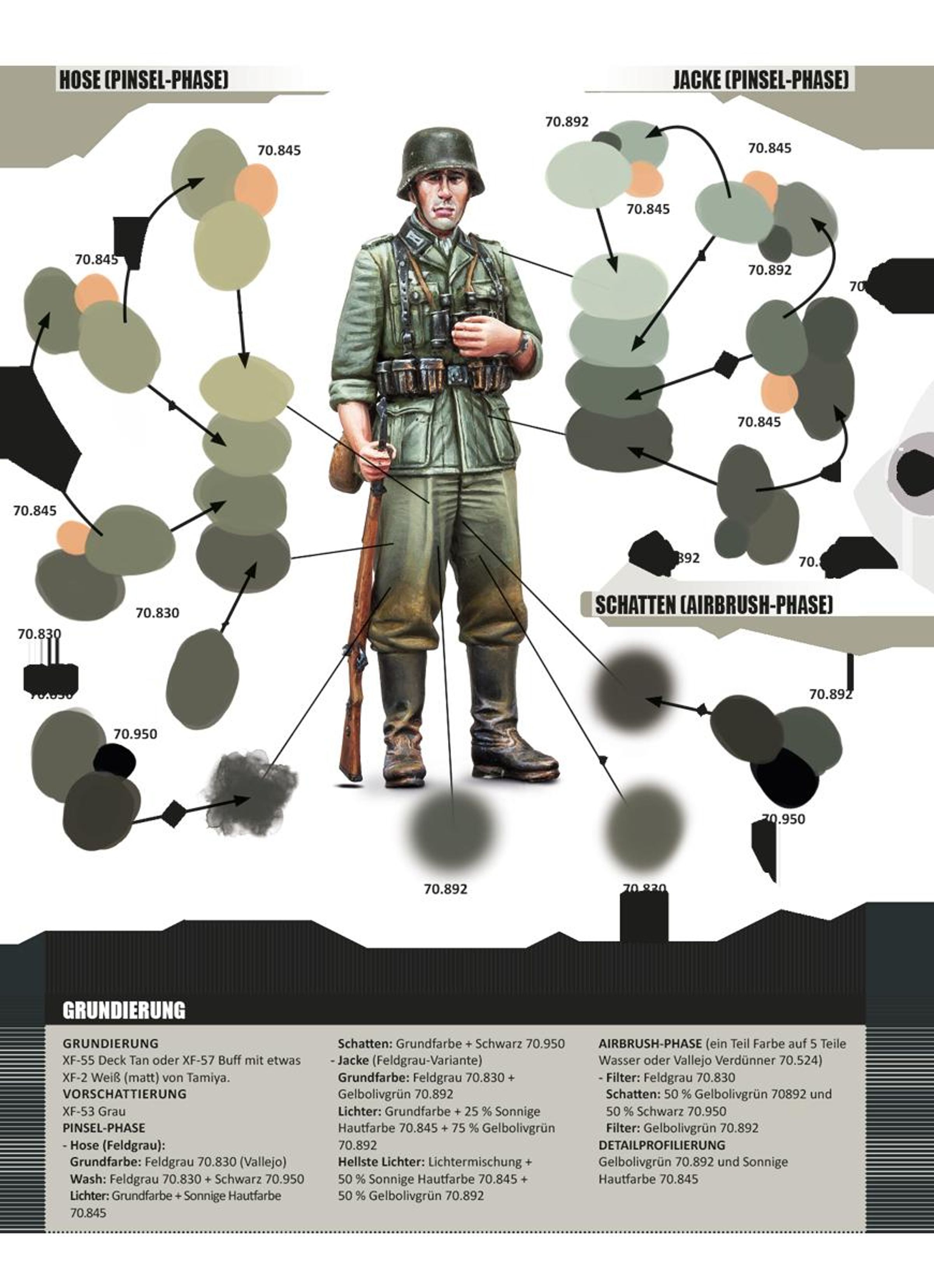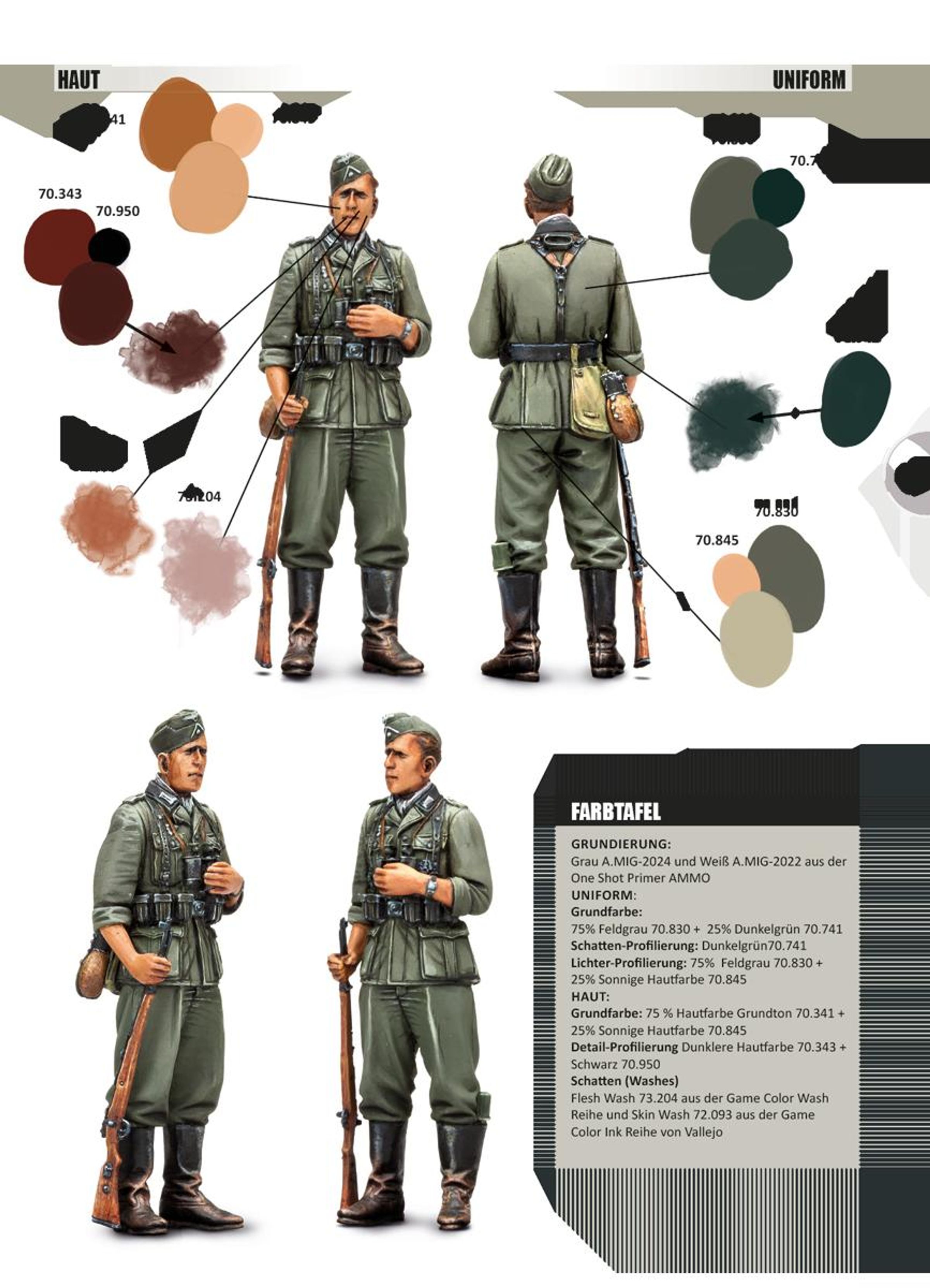 Im zweiten Teil von "Diorama Projekt" geht es um die Bemalung der zu den Dioramen gehörigen Figuren. Diesmal wirkten wieder mit: Frederik Astier, Jari Hemila, Fabrizio Pincelli, Adam Wilder und Fernando González. Im ersten Teil des Buches werden Arbeitsplatz, die Farben und andere benötigte Materialien sowie der Zusammenbau der Figuren vorgestellt. Hauptaugenmerk liegt aber dann auf den Maltechniken. Es werden die Grundlagen der Uniform- und Gesichtsbemalung gezeigt, darüber hinaus aber auch die verschiedensten Techniken. Das Malen mit Pinsel und Airbrush wird gleichrangig behandelt. Ein Hauptthema sind die Alterungseffekte. Im zweiten Teil des Buches wird die Bemalung an ganz konkreten Figuren verschiedener Streitkräfte des Zweiten Weltkrieges gezeigt: