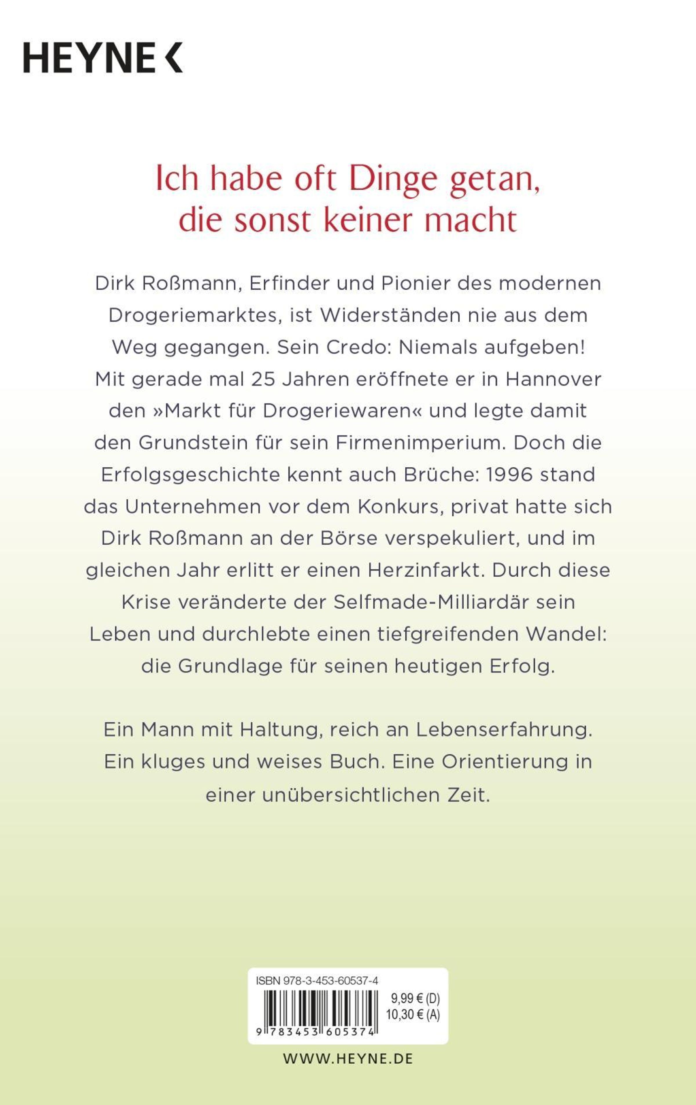 Durch diese Krise veränderte Dirk Roßmann sein Leben und durchlebte einen tiefgreifenden Wandel. Das sieht er heute als Grund für seinen Erfolg an. Ein Mann mit Haltung, reich an Lebenserfahrung, ein kluges und weises Buch, Orientierung in einer unübersichtlichen Zeit.