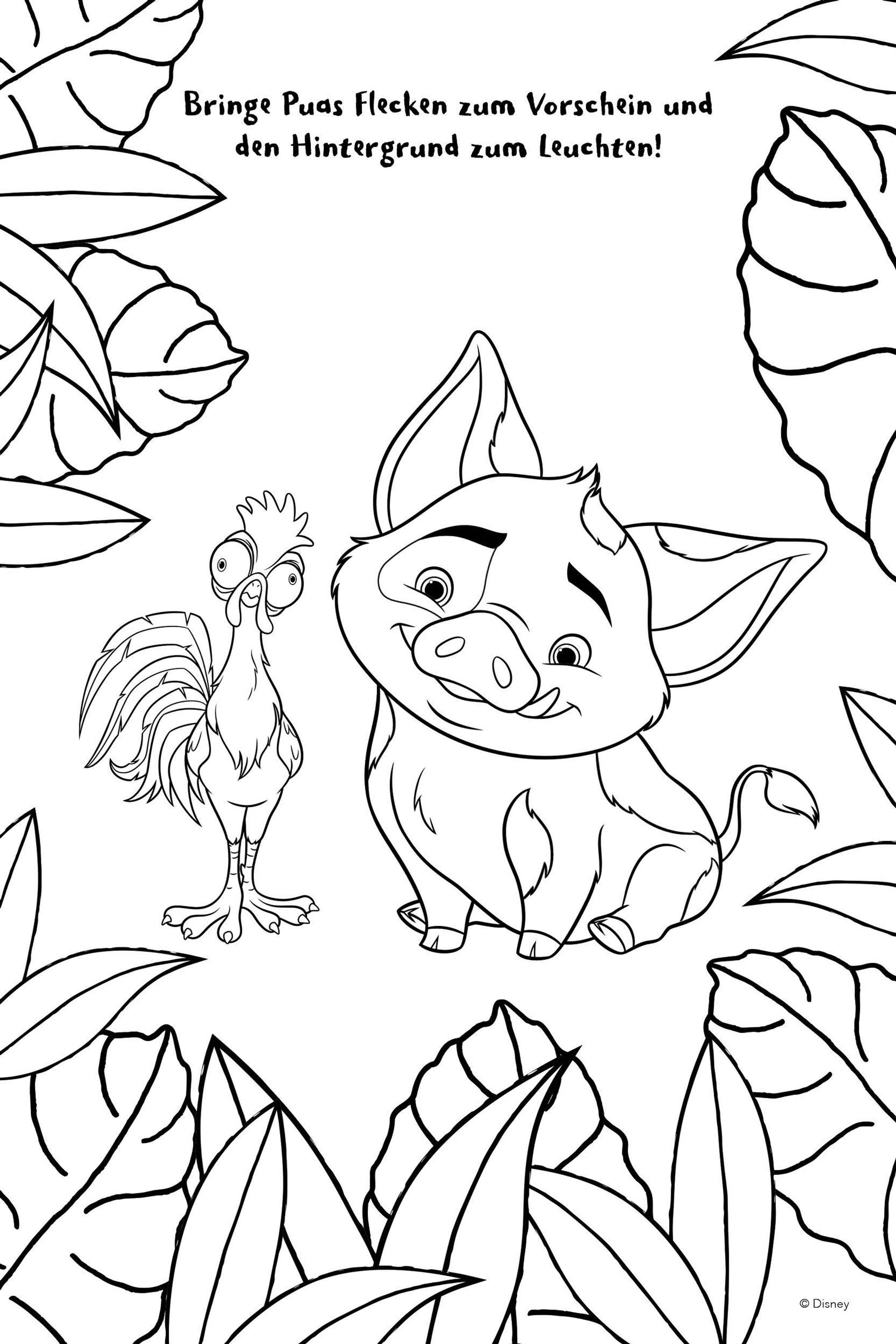 Wer begleitet Vaiana auf ihren Abenteuern? Wo hat sich Simea versteckt, und wer ist Mauis größter Fan? Male die zauberhaften Ausmalbilder aus und bringe so die verborgenen Motive zum Vorschein!