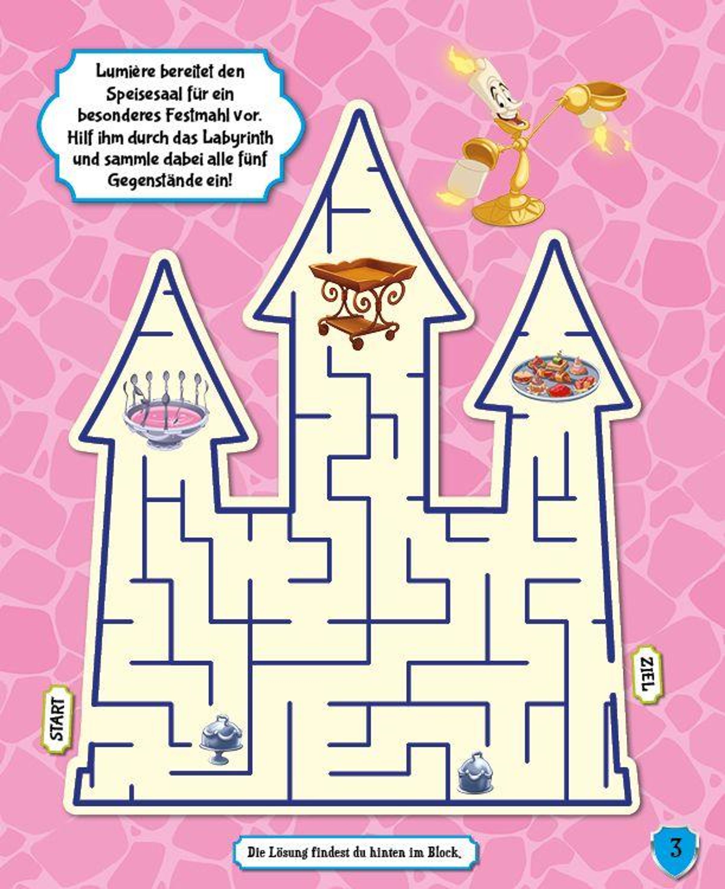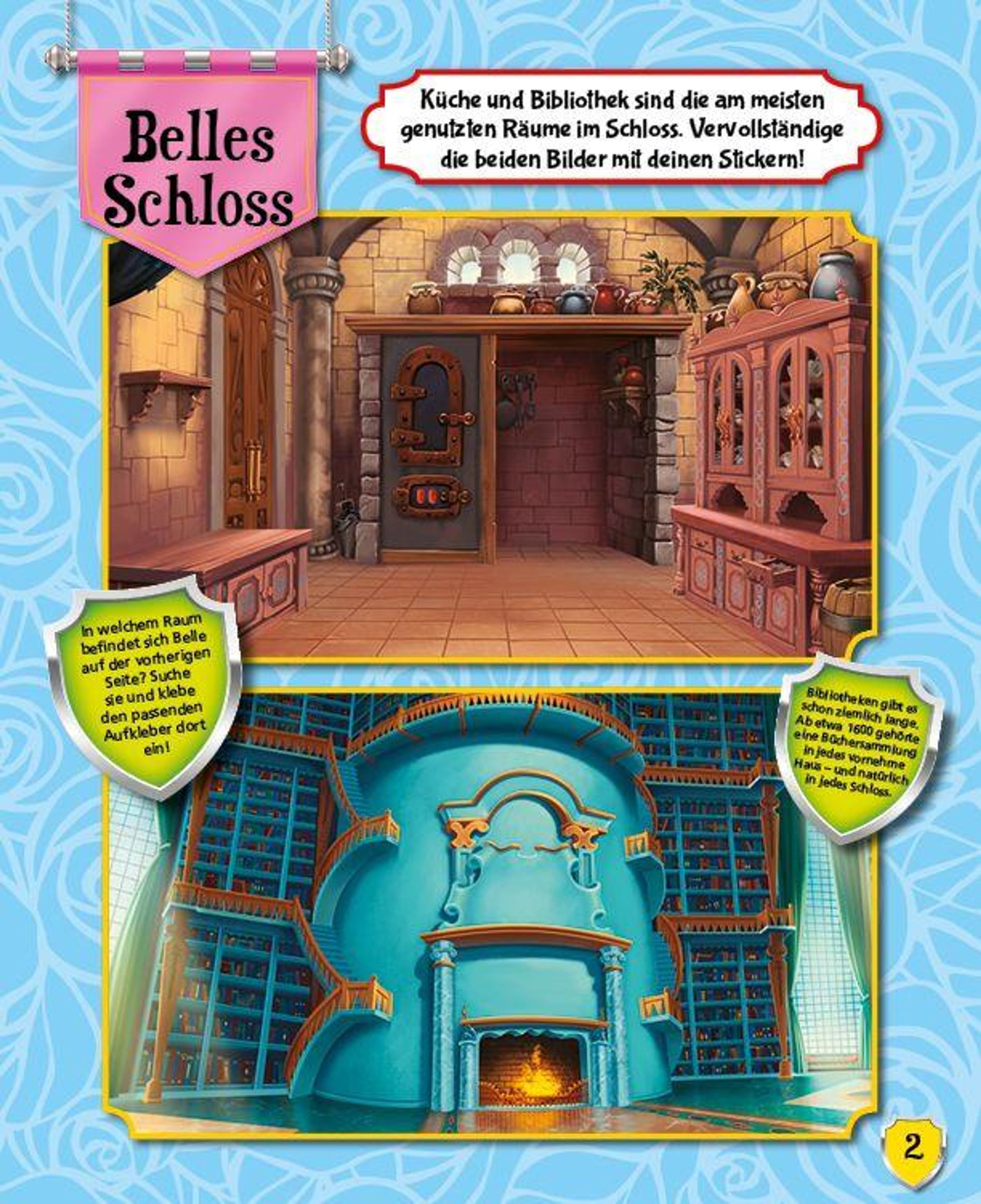 Öffne die Türen zu den magischen Disney-Schlössern und bestaune Jasmins Palast, Auroras Schloss, Rapunzels Turm und viele mehr! In diesem Block erhältst du zauberhafte Einblicke in das Zuhause deiner liebsten Disney-Prinzessinnen. Außerdem warten spannende Rätsel, Szenen zum Bestickern sowie über 400 Sticker auf dich.