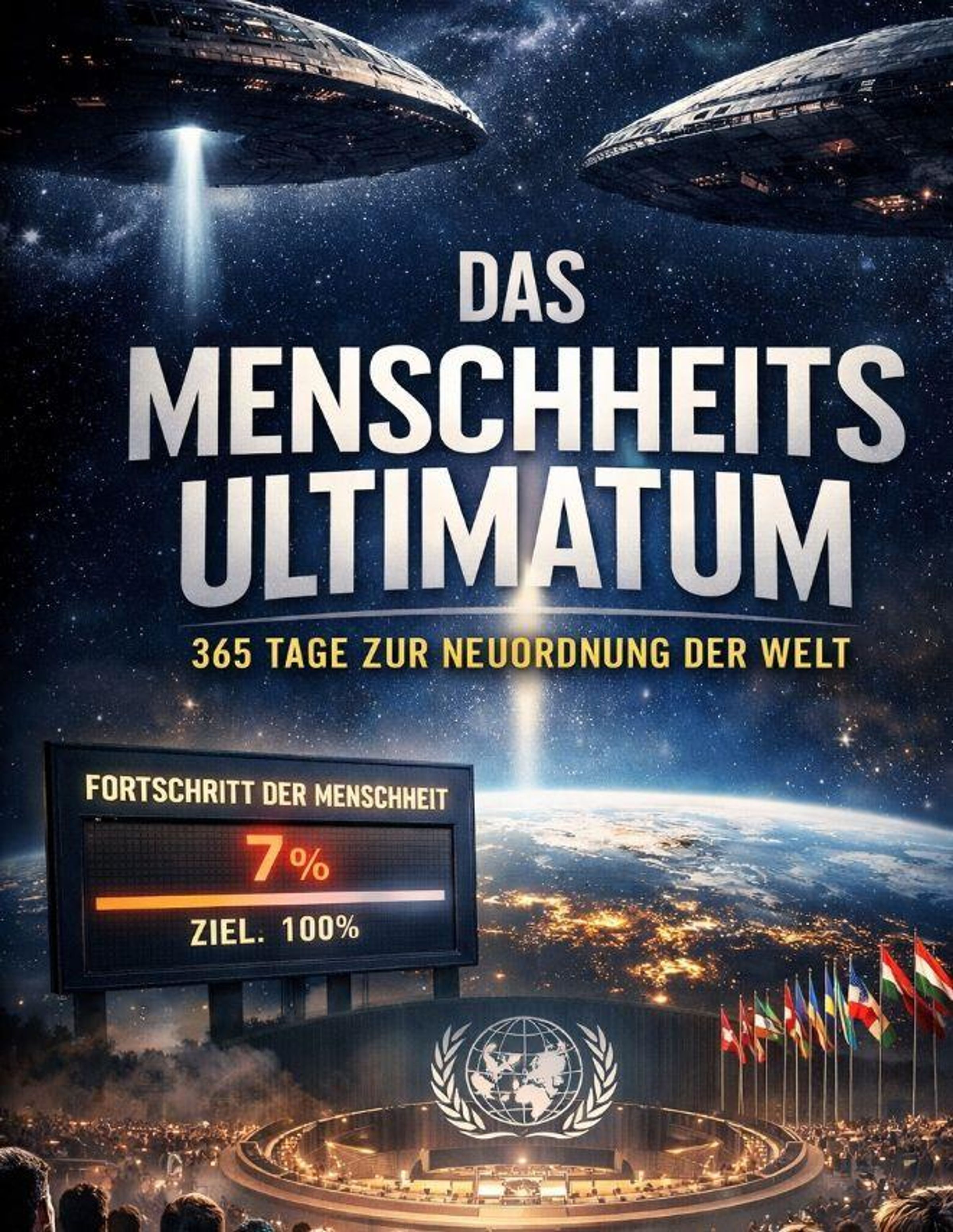 Auf allen Bildschirmen erscheint dieselbe verstörende Zahl: 7 %. So viel ist die Menschheit zu Beginn noch wert. Von diesem Moment an läuft ein global sichtbarer Fortschrittswert unaufhaltsam in Richtung 100 % - und mit jedem Tag steigt der Druck. Regierungen geraten ins Wanken, die UNO versagt, alte Machtstrukturen brechen auseinander, und die Idee eines Weltparlaments wird plötzlich zur letzten Hoffnung der Zivilisation.