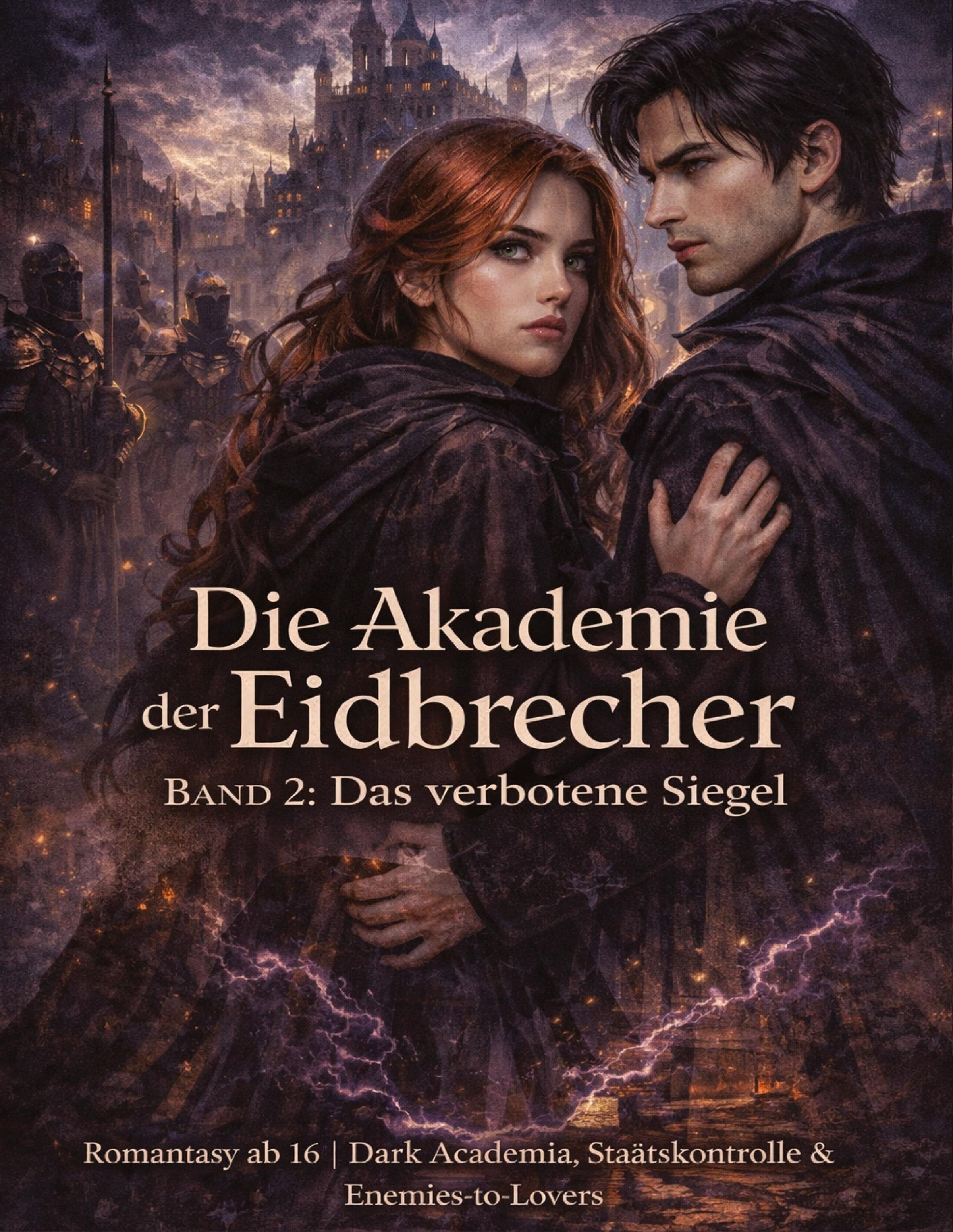 Nach dem öffentlichen Bruch ist Liora Vey als Eidbrecherin enttarnt - und damit keine Schülerin mehr, sondern eine staatliche Ressource. Der Rat erklärt sie zur Gefahr, der Hof entsendet Gesandte, und die Akademie Ardentis wird abgeriegelt. Nicht um Liora zu bestrafen, sondern um sie zu benutzen: Sie soll vor Publikum Siegel lösen, Eide brechen und Magie kontrollieren - im Namen der Ordnung.