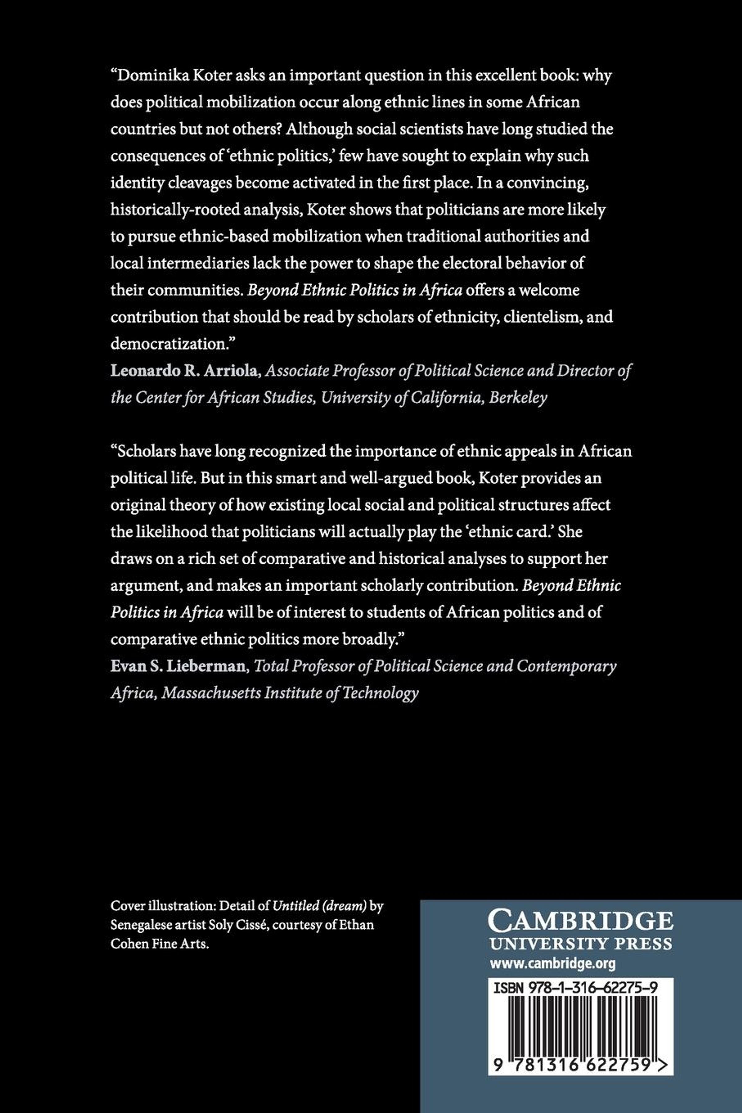 Why do ethnic politics emerge in some ethnically diverse societies but not others? Focusing on sub-Saharan Africa, Dominika Koter argues that the prevailing social structures of a country play a central role in how politicians attempt to mobilize voters. In particular, politicians consider the strength of local leaders, such as chiefs or religious dignitaries, who have historically played a crucial role in many parts of rural Africa. Local leaders can change the electoral dynamics by helping politicians secure votes among people of different ethnicities. Ethnic politics thus can be avoided where there are local leaders who can serve as credible electoral intermediaries between voters and politicians. Koter shows that there is widespread variation in the standing of local leaders across Africa, as a result of long-term historical trends, which has meant that politicians have mobilized voters in qualitatively different ways, resulting in different levels of ethnic politics across the continent.
