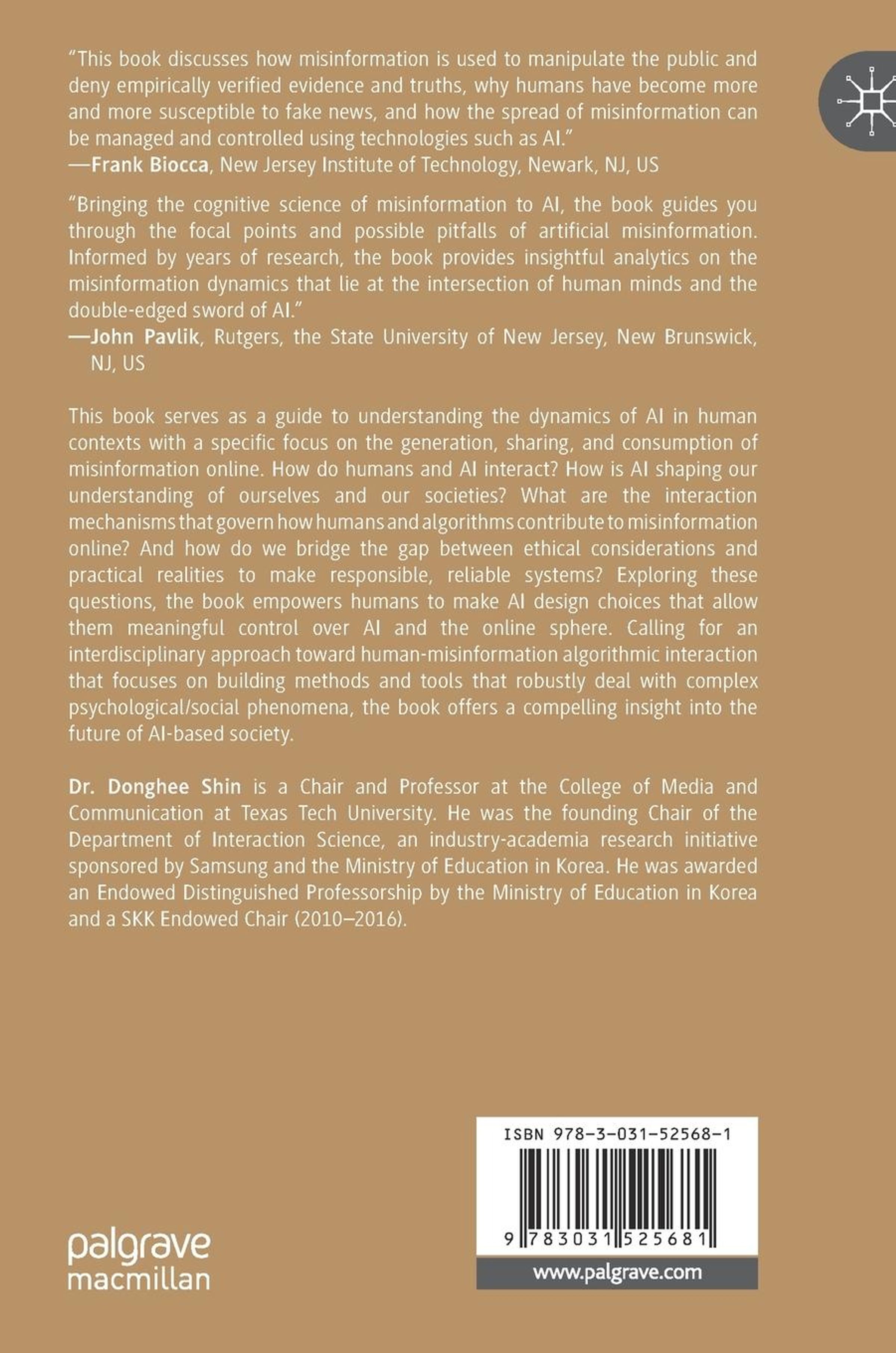 This book serves as a guide to understanding the dynamics of AI in human contexts with a specific focus on the generation, sharing, and consumption of misinformation online. How do humans and AI interact? How is AI shaping our understanding of ourselves and our societies? What are the interaction mechanisms that govern how humans and algorithms contribute to misinformation online? And how do we bridge the gap between ethical considerations and practical realities to make responsible, reliable systems? Exploring these questions, the book empowers humans to make AI design choices that allow them meaningful control over AI and the online sphere. Calling for an interdisciplinary approach toward human-misinformation algorithmic interaction that focuses on building methods and tools that robustly deal with complex psychological / social phenomena, the book offers a compelling insight into the future of AI-based society.