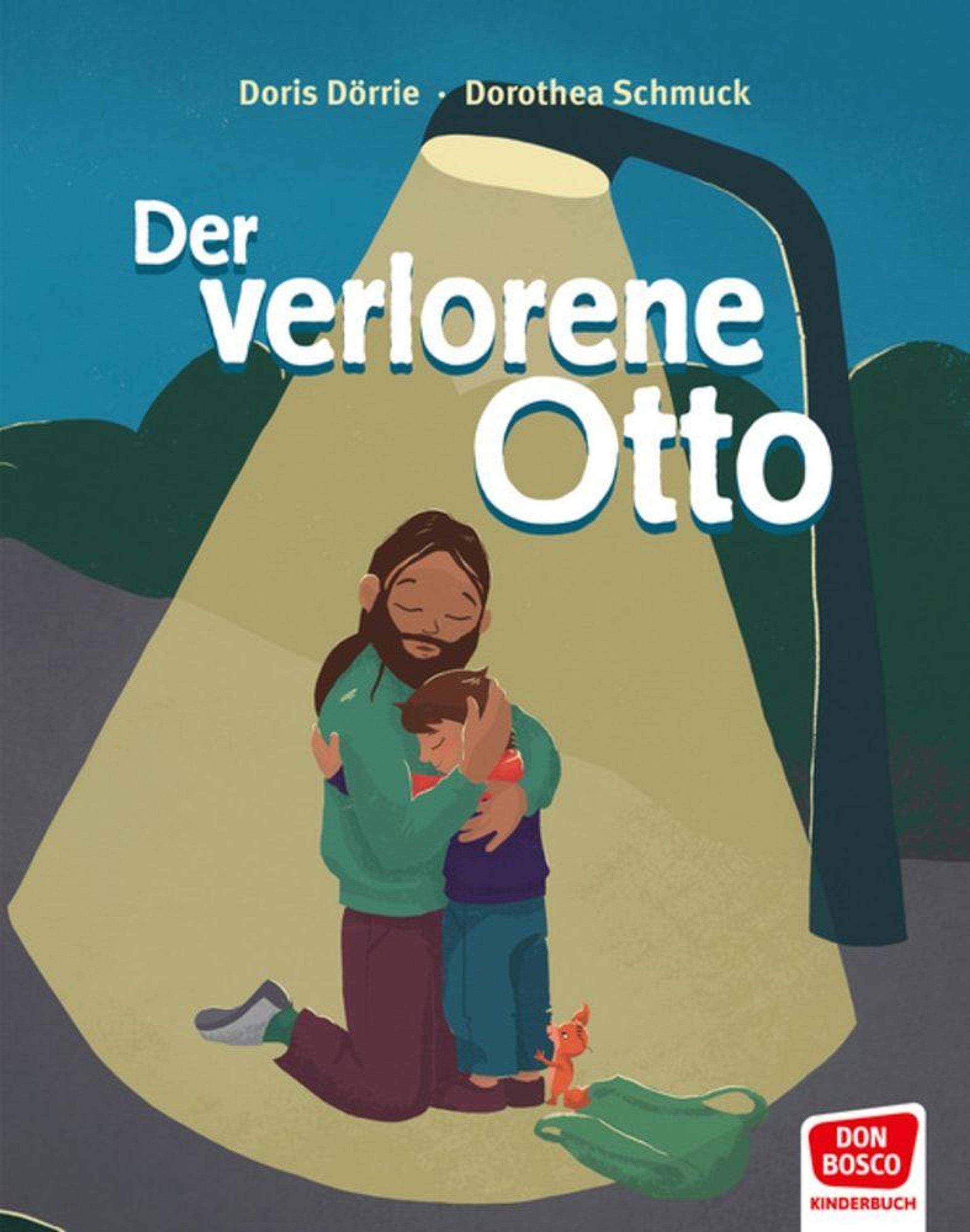 Ein Mann und ein Kind umarmen sich unter einer Straßenlaterne. Unten rechts befindet sich ein rotes "Don Bosco Kinderbuch"-Logo., Buch