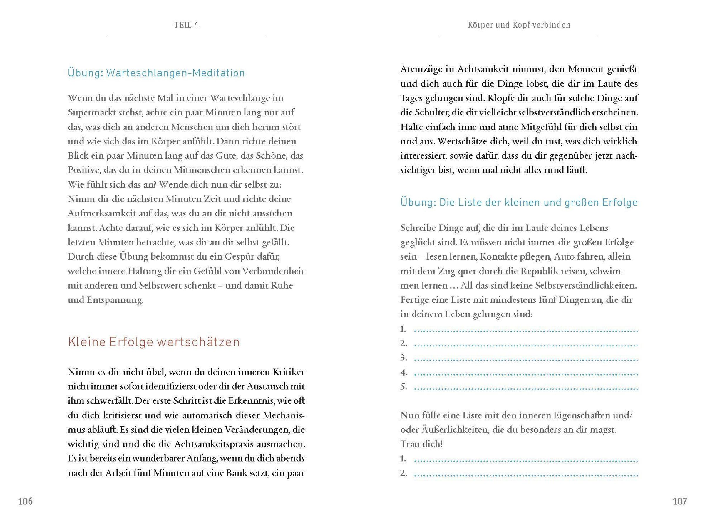 Dieses Buch richtet sich an alle Ruhelosen und Gehetzten, bei denen in Meditations- und Entspannungskursen eher Stress als ein seliges Lächeln entsteht. Achtsamkeitslehrerin Doris Iding weiß aus Erfahrung: Für manche sind fünf Minuten in Stille sitzen eine Tortur. Aus dieser Beobachtung heraus hat die Autorin das vorliegende Übungsprogramm für mehr Gelassenheit und Körperbewusstsein entwickelt. Ausgangspunkt ist eine kurze Achtsamkeitsübung, in der es in drei Atemzügen gelingt, im Moment anzukommen.