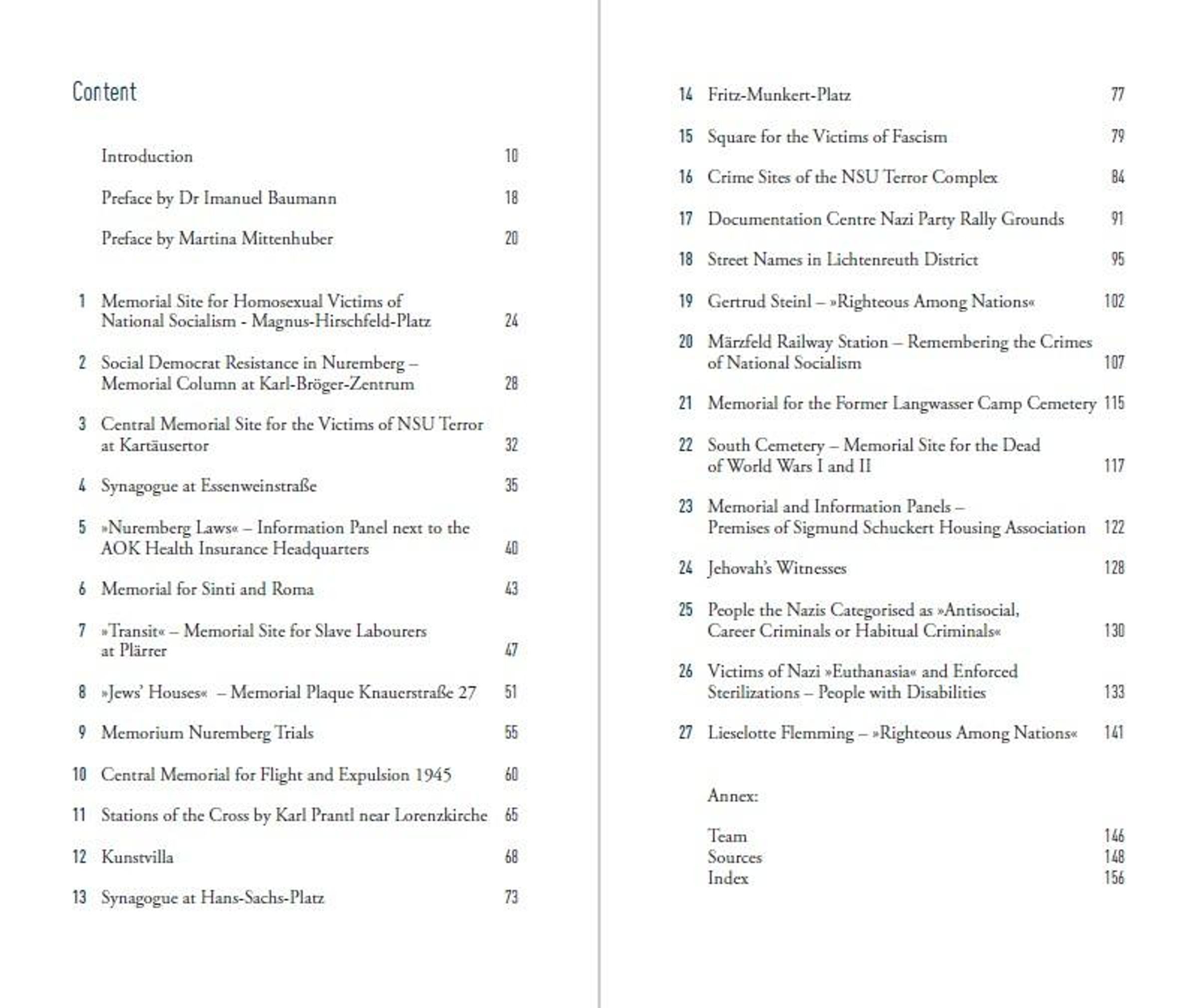 With fewer and fewer contemporary witnesses as moral guides, places are becoming more important than ever as a visualization of the National Socialist persecution and murder of people. Never Forget! takes the reader on a walk through Nuremberg and its recent history. The book aims to raise awareness of the commemoration of various victim groups - including LGBTIQ+, forced laborers - as well as contemporary crimes such as the NSU murders.
