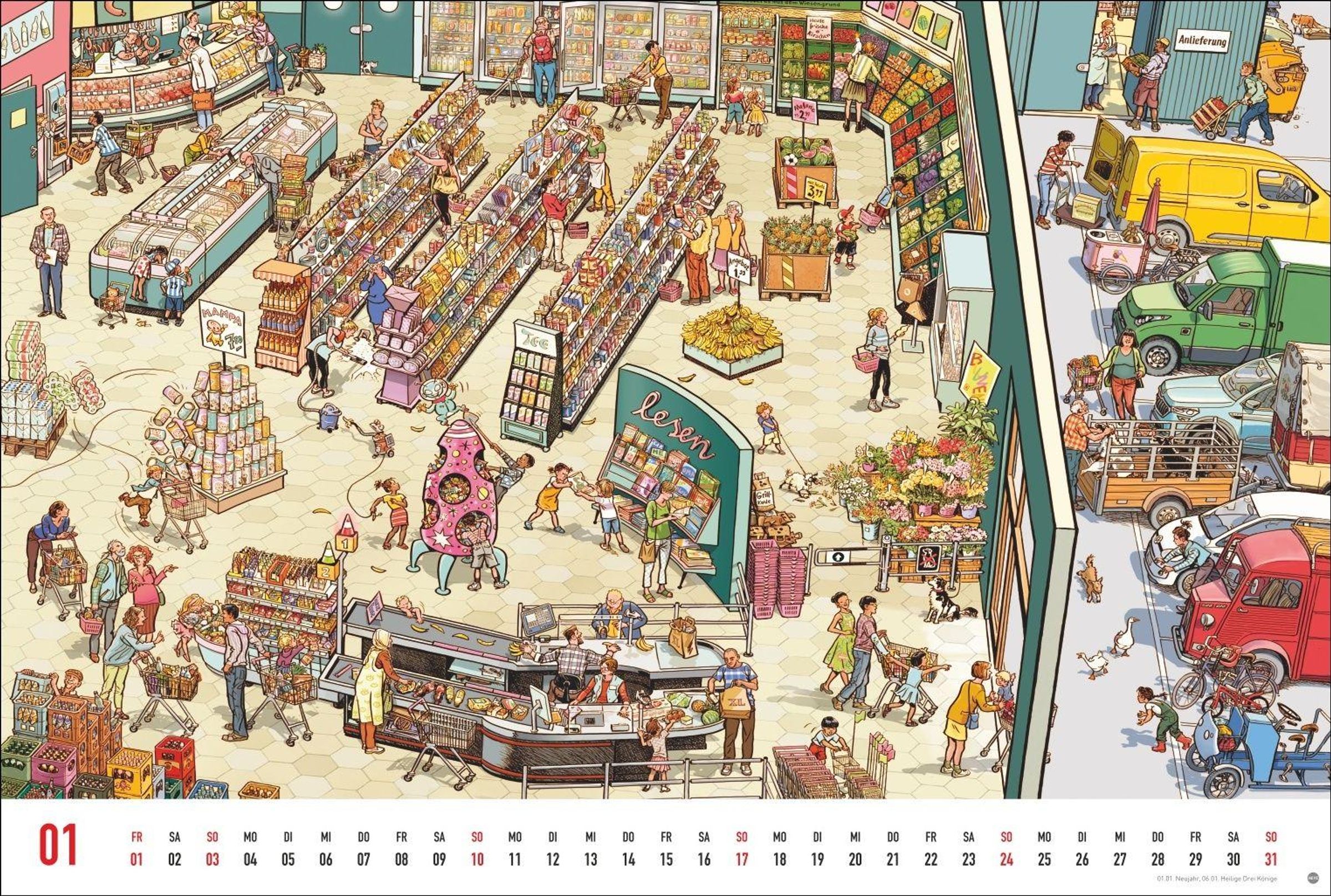 Der perfekte Rahmen für die schönsten Wimmelbilder des deutschen Künstlerehepaars: großer Kalender im Blickfang-Format 58 x 39 cm