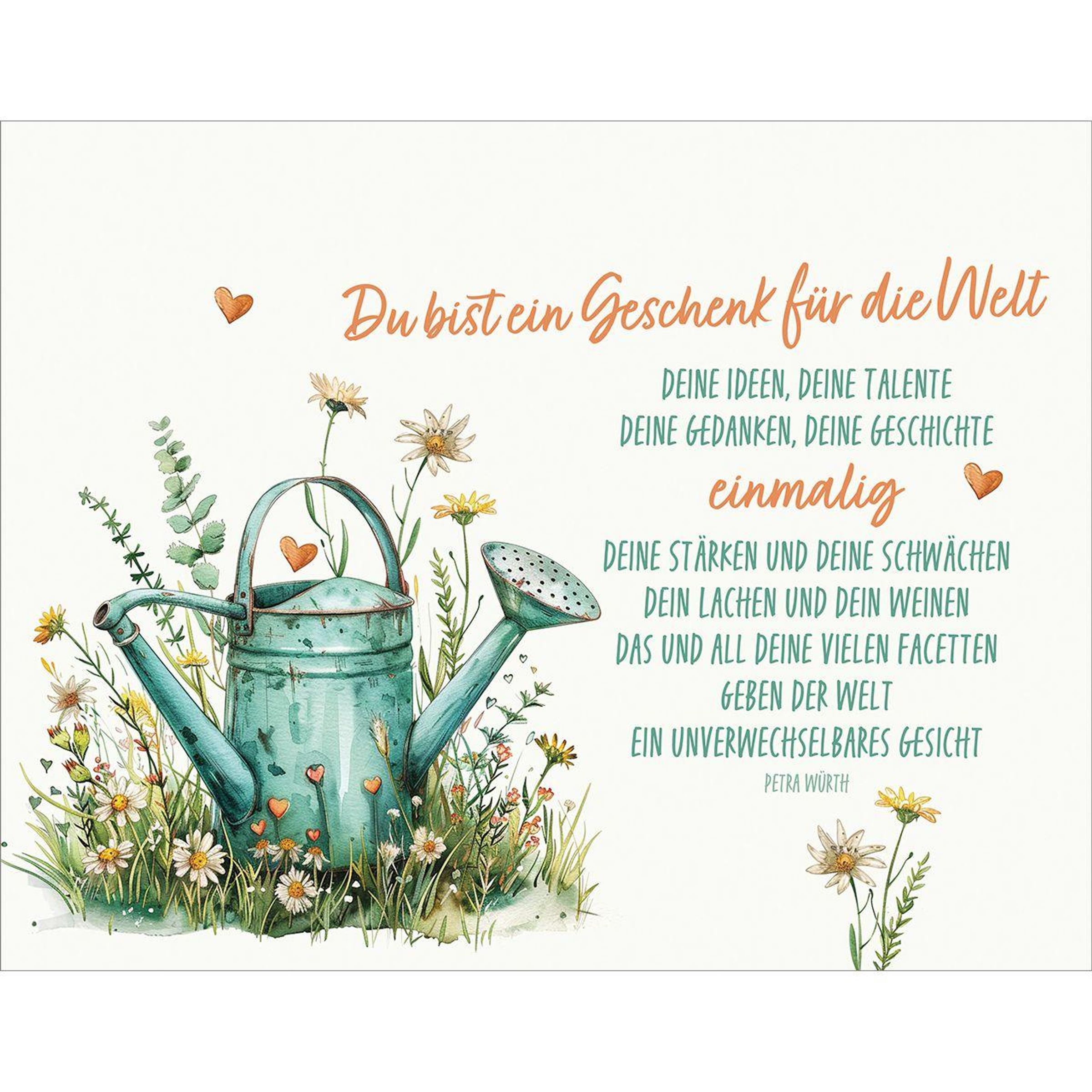 Ein farbenfroh gestaltetes Aufstellbuch mit Worten, die der Seele gut tun. Ob als hübsche, wechselnde Dekoration oder als herausgetrennte Postkarte - auf wertschätzende Weise sagen sie: Du bist ein kostbares Geschenk.