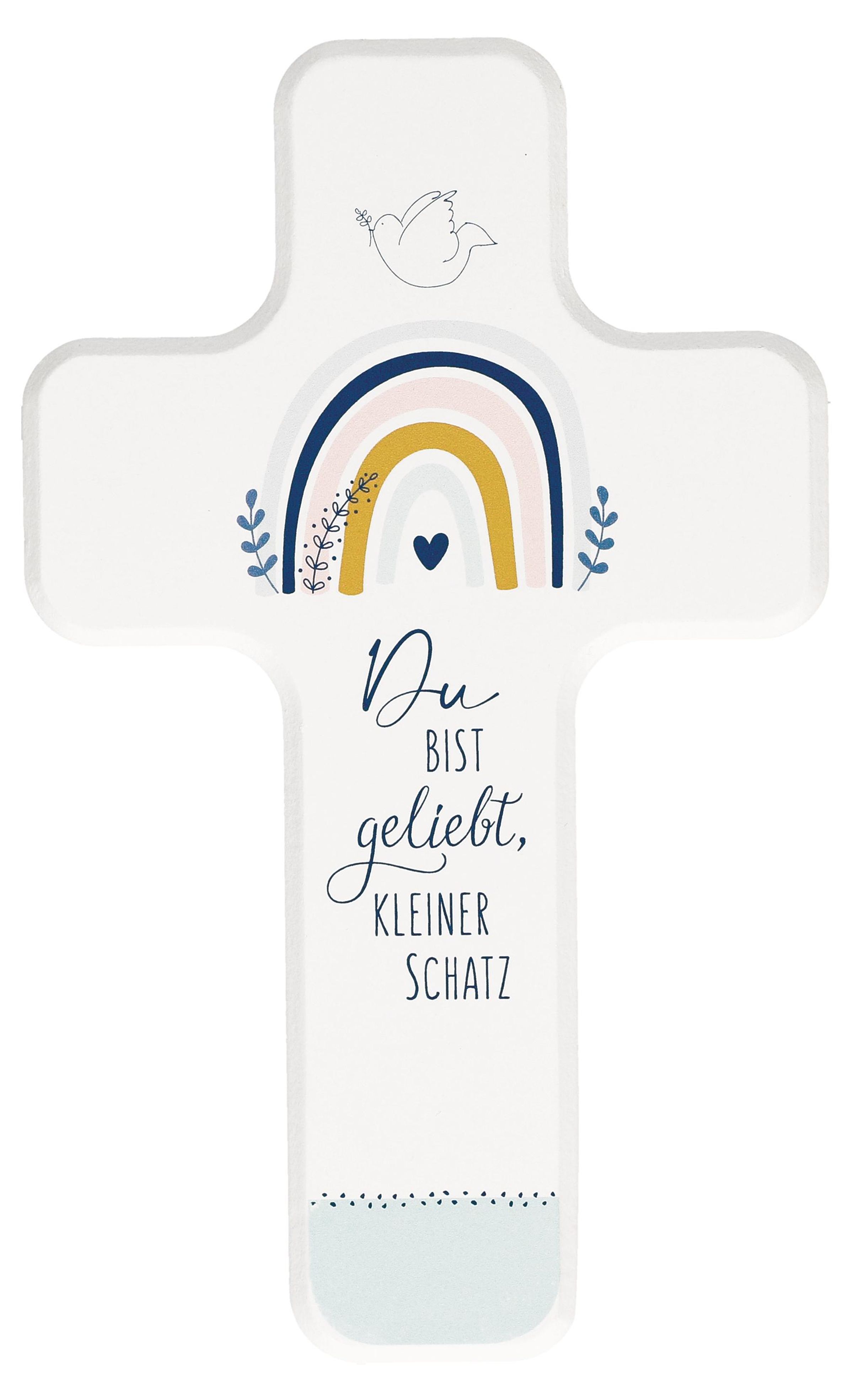 Bei diesem robusten Kreuz für Kinder handelt es sich um ein Unikat, das in einer hochwertigen Geschenkverpackung geliefert wird. Es eignet sich als liebevolle Geschenkidee für die Taufe.