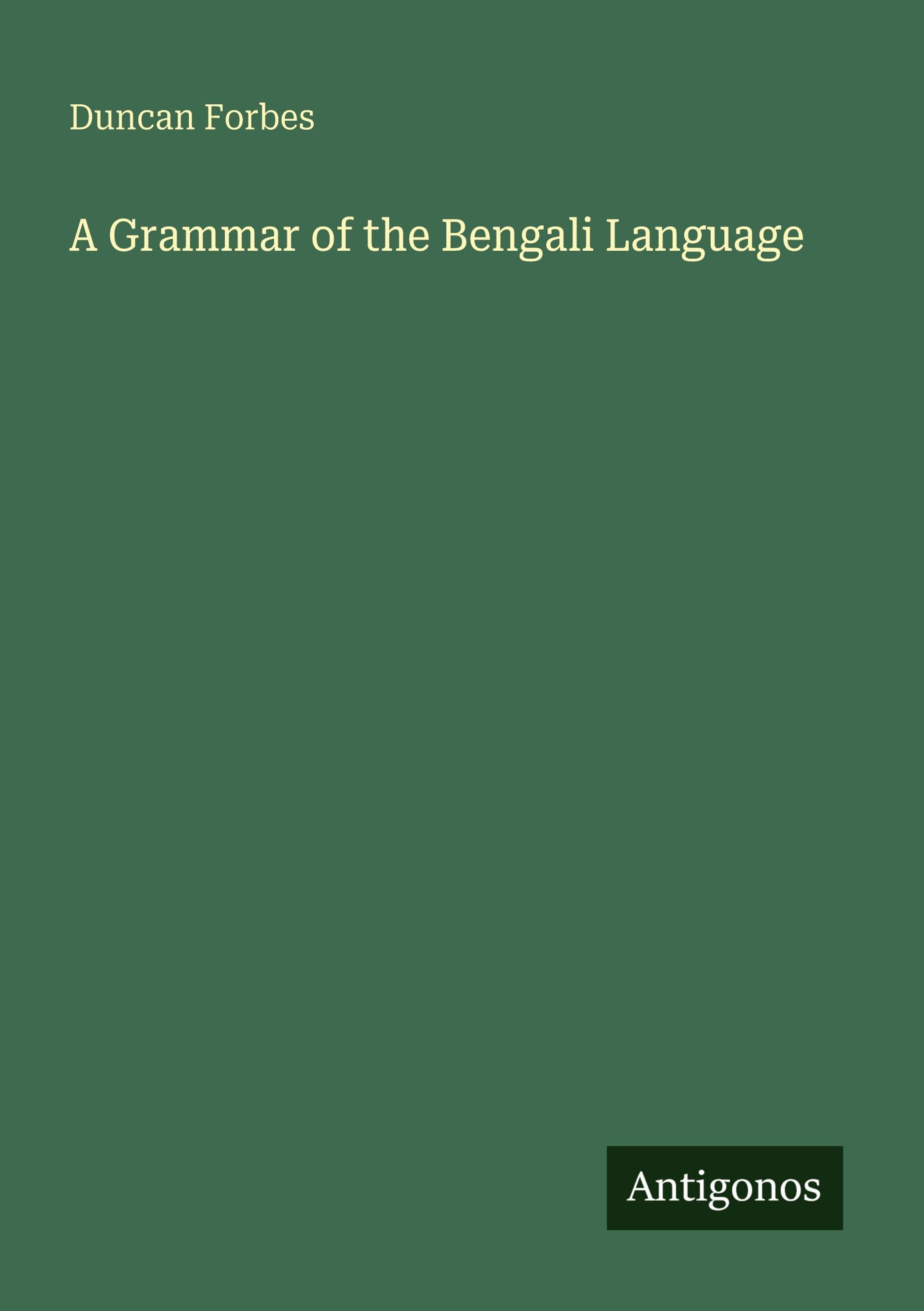 Duncan Forbes: A Grammar of the Bengali Language, Kartoniert / Broschiert