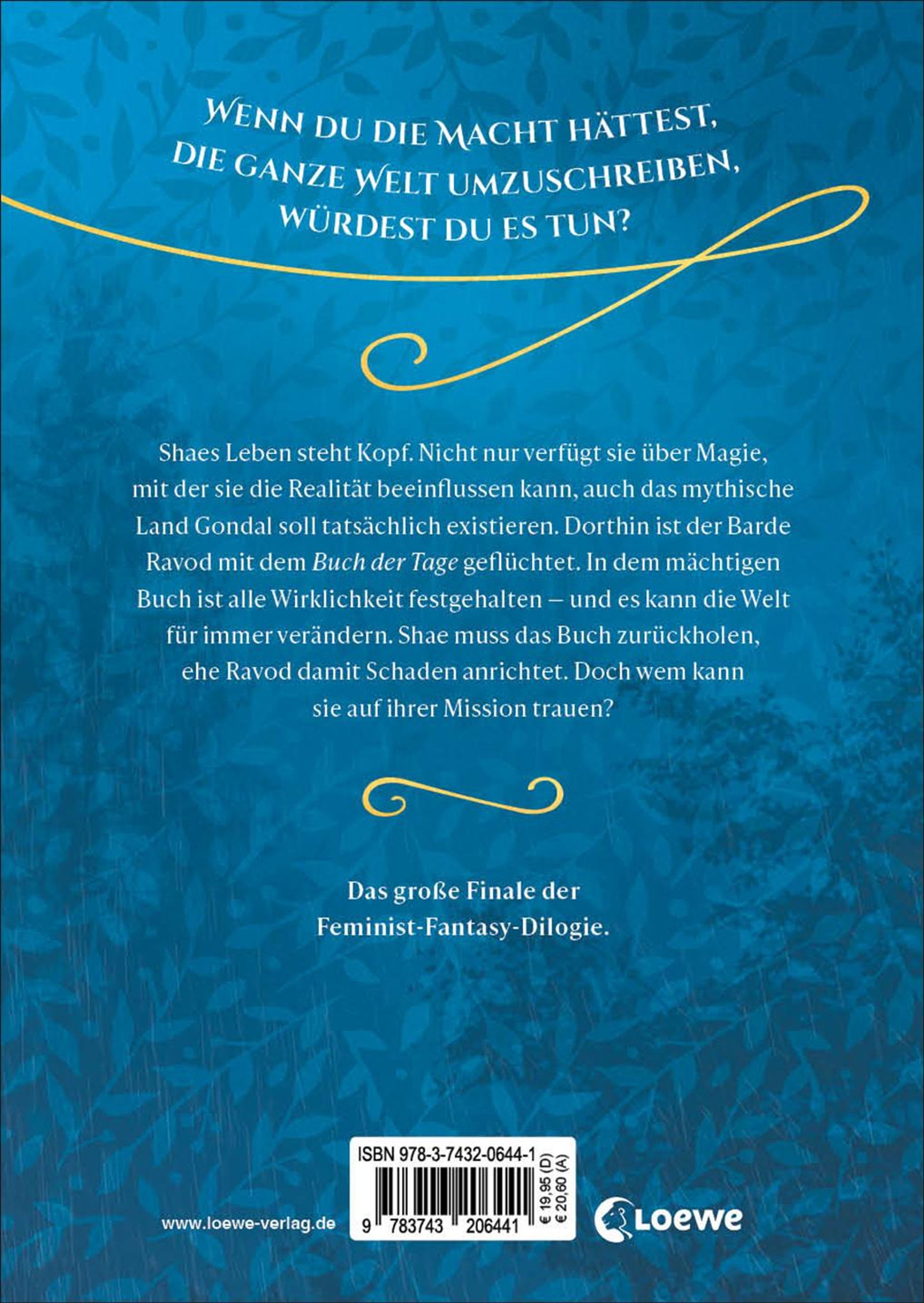 Shaes Leben steht Kopf. Nicht nur verfügt sie über Magie, mit der sie die Realität beeinflussen kann, auch das mythische Land Gondal soll tatsächlich existieren. Dorthin ist der Barde Ravod mit dem Buch der Tage geflüchtet. In dem mächtigen Buch ist alle Wirklichkeit festgehalten - und es kann die Welt für immer verändern. Shae muss das Buch zurückholen, ehe Ravod damit Schaden anrichtet. Doch wem kann sie auf ihrer Mission trauen?