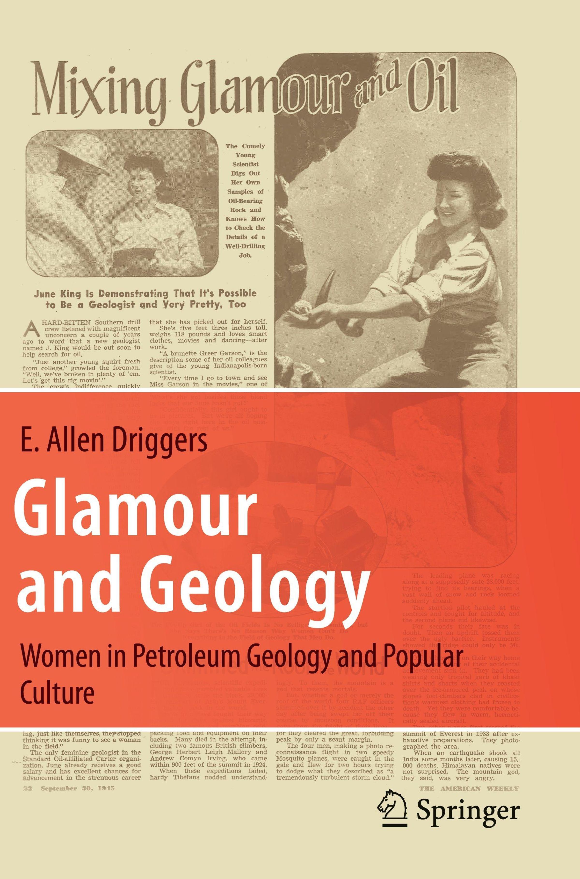 Text: "Glamour and Geology: Women in Petroleum Geology and Popular Culture" von E. Allen Driggers. Logo unten rechts., Buch