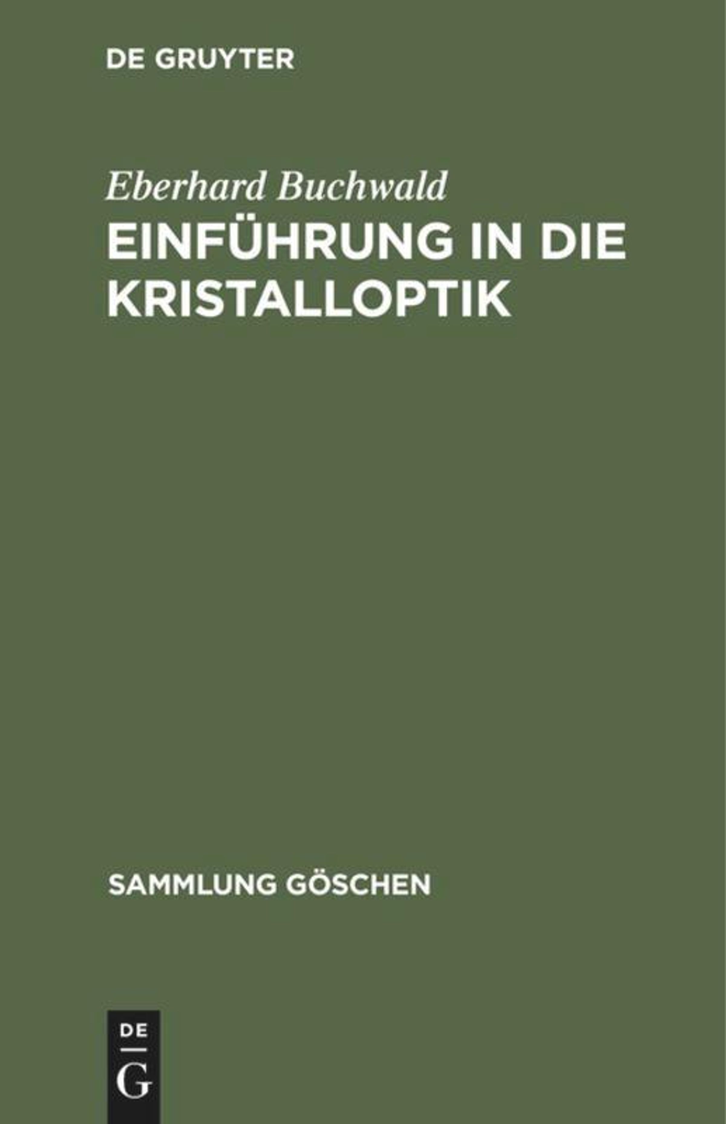 Eberhard Buchwald: Einführung in die Kristalloptik, Gebunden