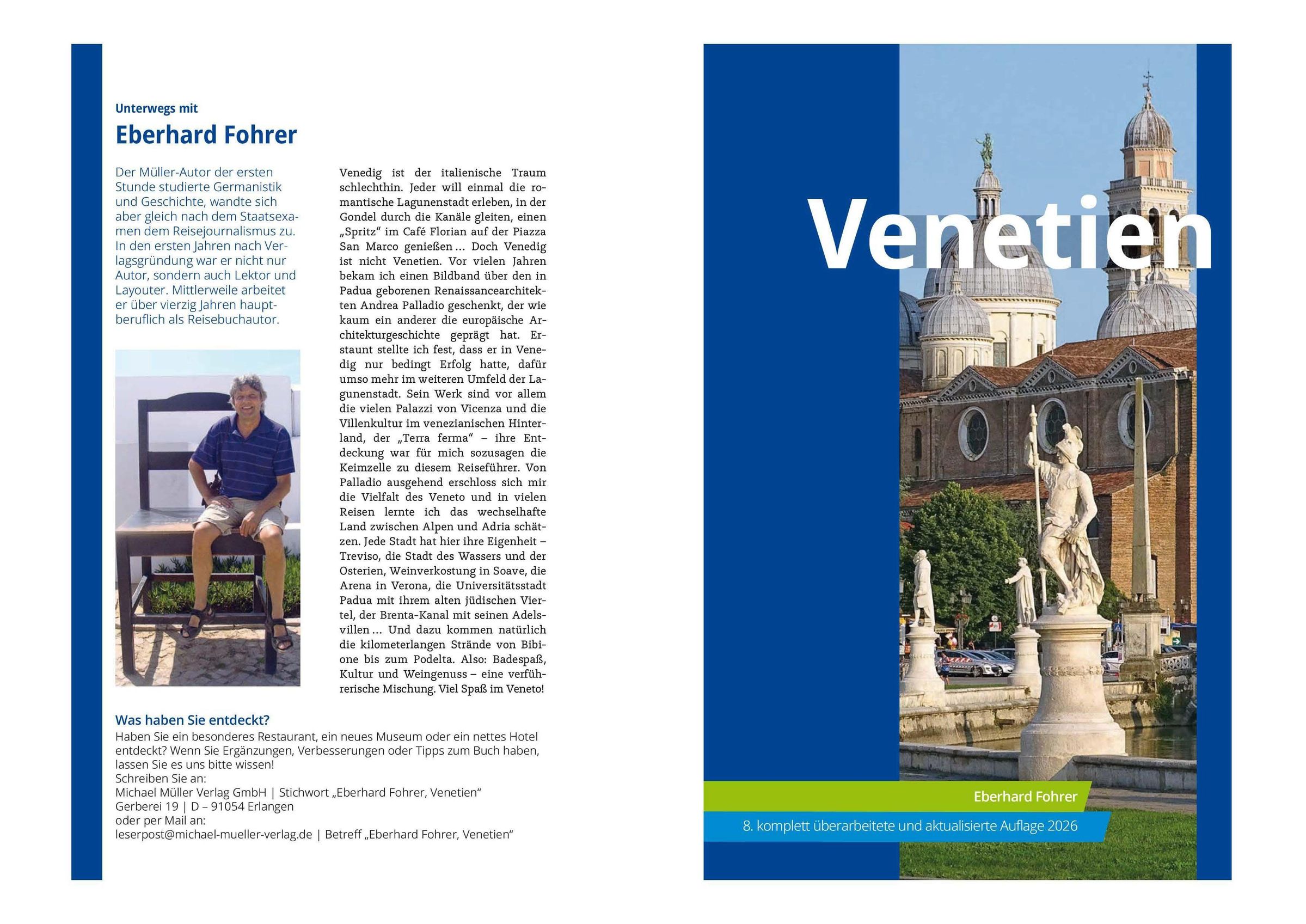 Autor Eberhard Fohrer kennt Venetien seit Jahrzehnten. Seine Geheimtipps führen Sie nicht nur zu den Must-Sees wie Verona, Padua oder Venedig, sondern auch zu stillen Weindörfern im Valpolicella, ans ursprüngliche Po-Delta oder in die Prosecco-Hügel bei Treviso.