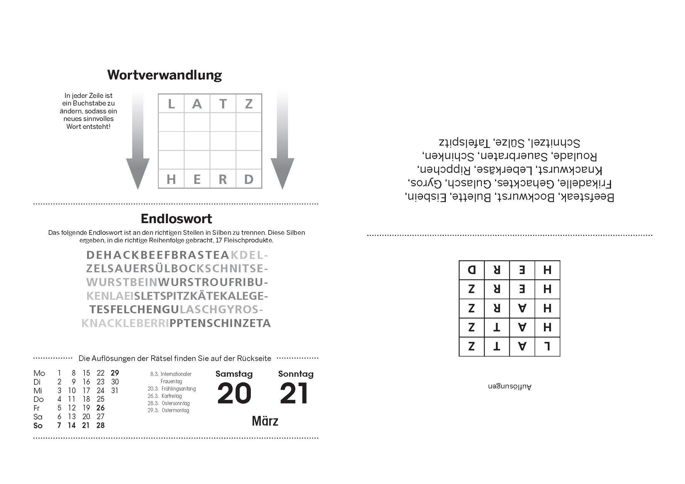 - Der Abreißkalender mit Rätseln, Qizfragen, Logik-, Geometrie-, Mathematikrätseln und Denkspielen
