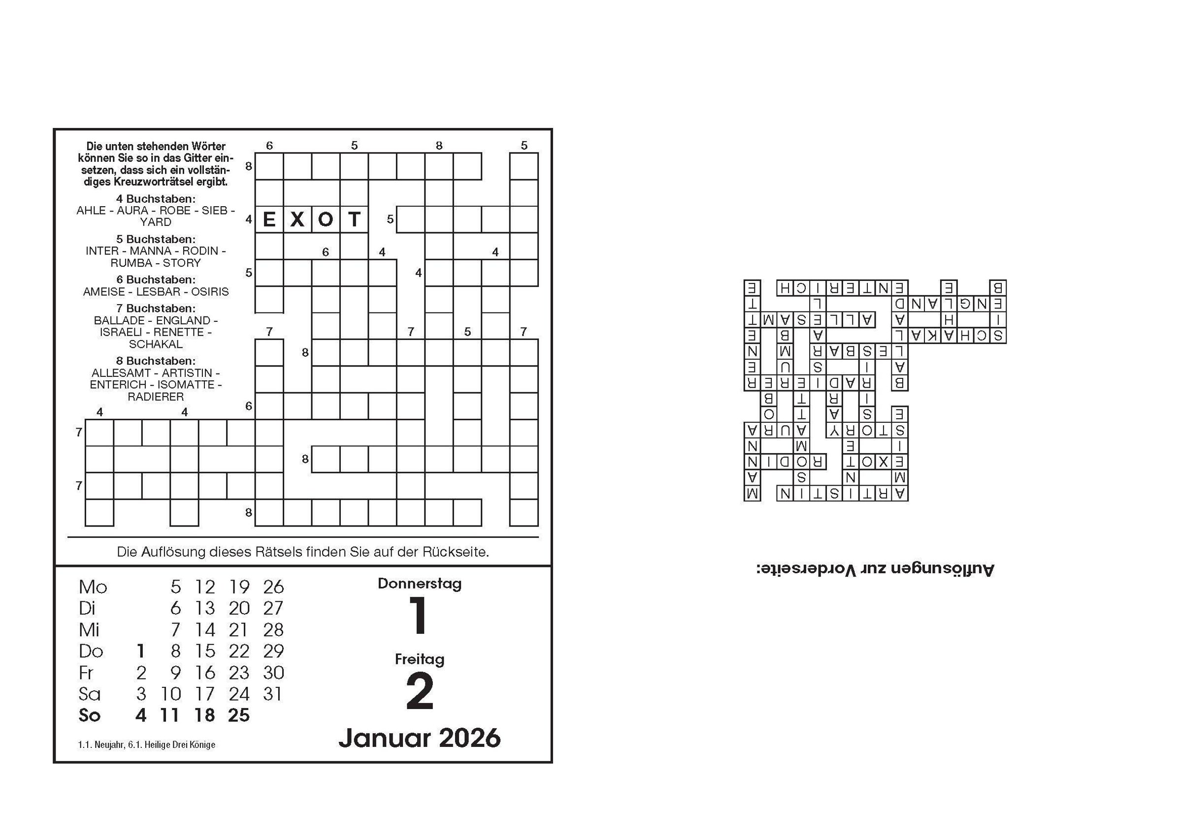 - Der beliebte Abreißkalender mit Kreuzworträtseln, Schwedenrätseln und Zahlenrätseln