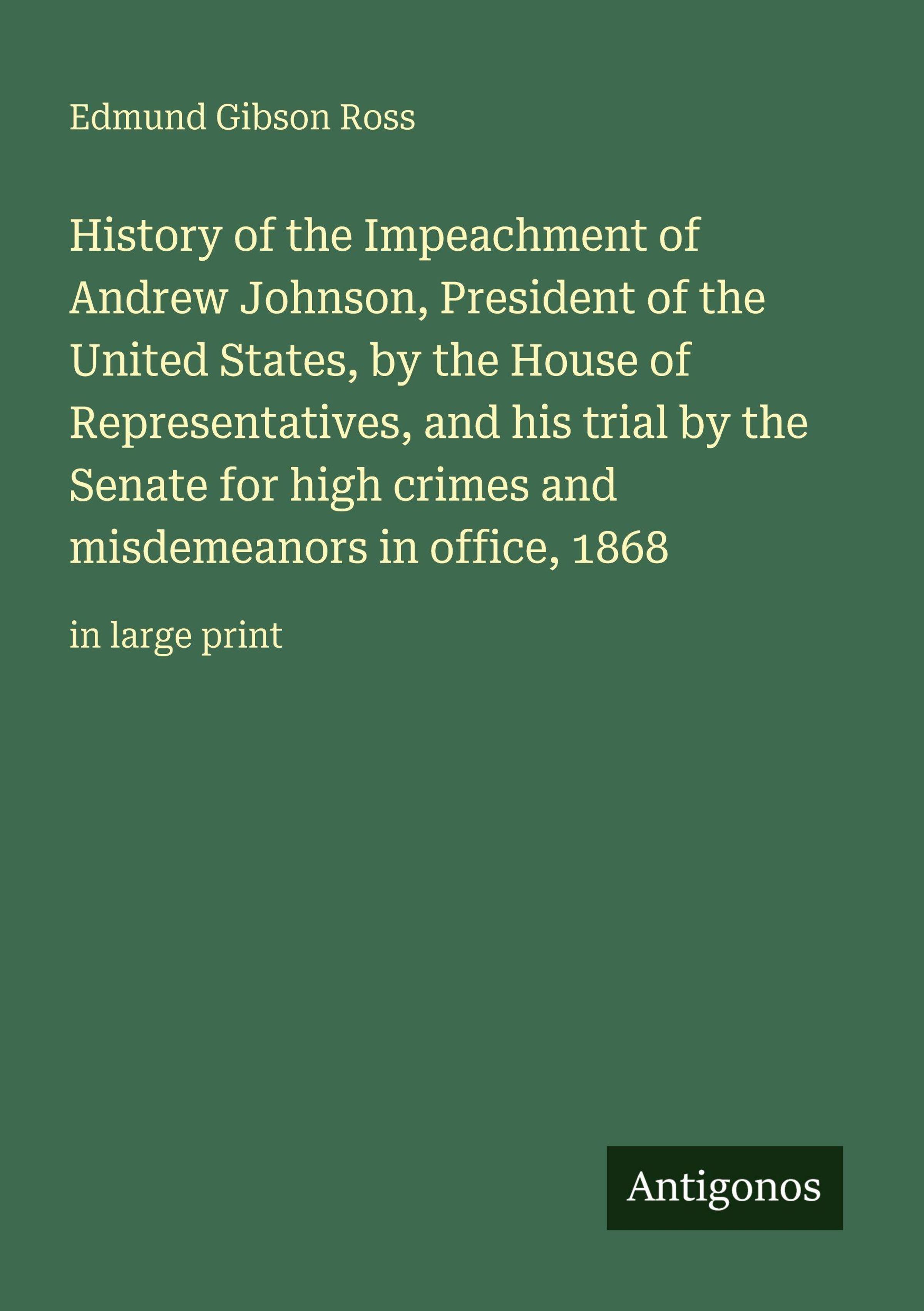 History of the Impeachment of Andrew Johnson, President of the United States, by the House of Representatives, and his trial by the Senate for high crimes and misdemeanors in office, 1868