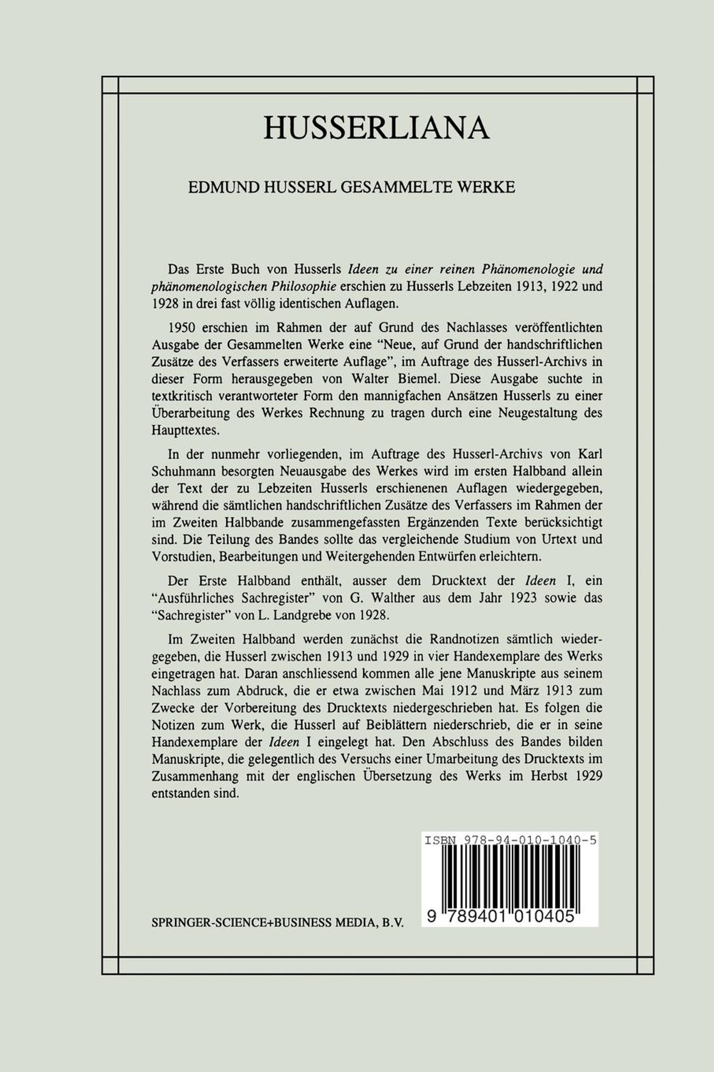 Das Erste Buch von Husserls Ideen zu einer reinen Phänome nologie und phänomenologischen Philosophie erschien zu Husserls Lebzeiten 1913, 1922 und 1928 in drei fast völlig identischen Auflagen. 1950 erschien im Rahmen der auf Grund des Nachlasses ver öffentlichten Ausgabe der Gesammelten Werke eine "Neue, auf Grund der handschriftlichen Zusätze des Verfassers erweiterte Auflage", im Auftrage des Husserl-Archivs in dieser Form her ausgegeben von Walter Biemel. Diese Ausgabe suchte in text kritisch verantworteter Form den mannigfachen Ansätzen Hus serls zu einer Überarbeitung des Werkes Rechnung zu tragen durch eine Neugestaltung des Haupttextes. In der nunmehr vorliegenden, im Auftrage des Husserl-Archivs von Karl Schuhmann besorgten Neuausgabe des Werkes wird im Ersten Halbband allein der Text der zu Lebzeiten Husserls er schienenen Auflagen wiedergegeben, während die sämtlichen handschriftlichen Zusätze des Verfassers im Rahmen der im Zwei ten Halbbande zusammengefaßten Ergänzenden Texte berück sichtigt sind. Zu dieser Neugestaltung des Bandes berechtigte und nötigte der Fortschritt der Editionsarbeit des Husserl-Archivs seit 1950 wie der Husserl-Forschung überhaupt. Die Entwicklung von Husserls Denken über die Fassung seiner Ideen von 1913 hinaus ist unterdessen vielfältig dokumentiert und erforscht, und zu gleich hat sich das Bedürfnis erneuert, auch wieder über den ur sprünglichen Text des Werks, wie es zu Husserls Lebzeiten er schien und wirkte, zu verfügen. Die Teilung des Bandes sollte das vergleichende Studium von Urtext und Vorstudien, Bearbei tungen und weitergehenden Entwürfen erleichtern.