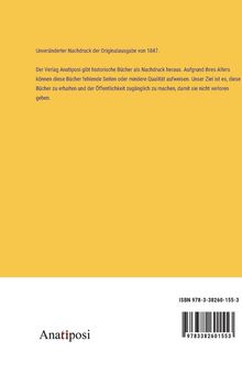 Unveränderter Nachdruck der Originalausgabe von 1847. Der Verlag Anatiposi gibt historische Bücher als Nachdruck heraus. Aufgrund ihres Alters können diese Bücher fehlende Seiten oder mindere Qualität aufweisen. Unser Ziel ist es, diese Bücher zu erhalten und der Öffentlichkeit zugänglich zu machen, damit sie nicht verloren gehen.