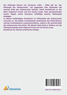 Der Philosoph Eduard von Hartmann (1842 - 1906) gilt als "der Philosoph des Unbewussten", der gegenüber dem Rationalen die zentrale Rolle des Unbewussten betonte. Damit beeinflusste er das Werk Siegmund Freuds und Carl Gustav Jungs. Dem pessimistischen Ansatz Hegels setzte Hartmann Schellings positive Philosophie entgegen. In seinem dreibändigen Hauptwerk zur Philosophie des Unbewussten versuchte er, die beiden verschiedenen Denkweisen des Rationalismus und des Irrationalismus zusammenzuführen, wobei er die zentrale Rolle des Unbewussten hervorhob. Mit diesem Werk hatte er Einfluss auf die Tiefenpsychologie eines Sigmund Freud und Carl Gustav Jung. Nachdruck der zehnten erweiterten Auflage.