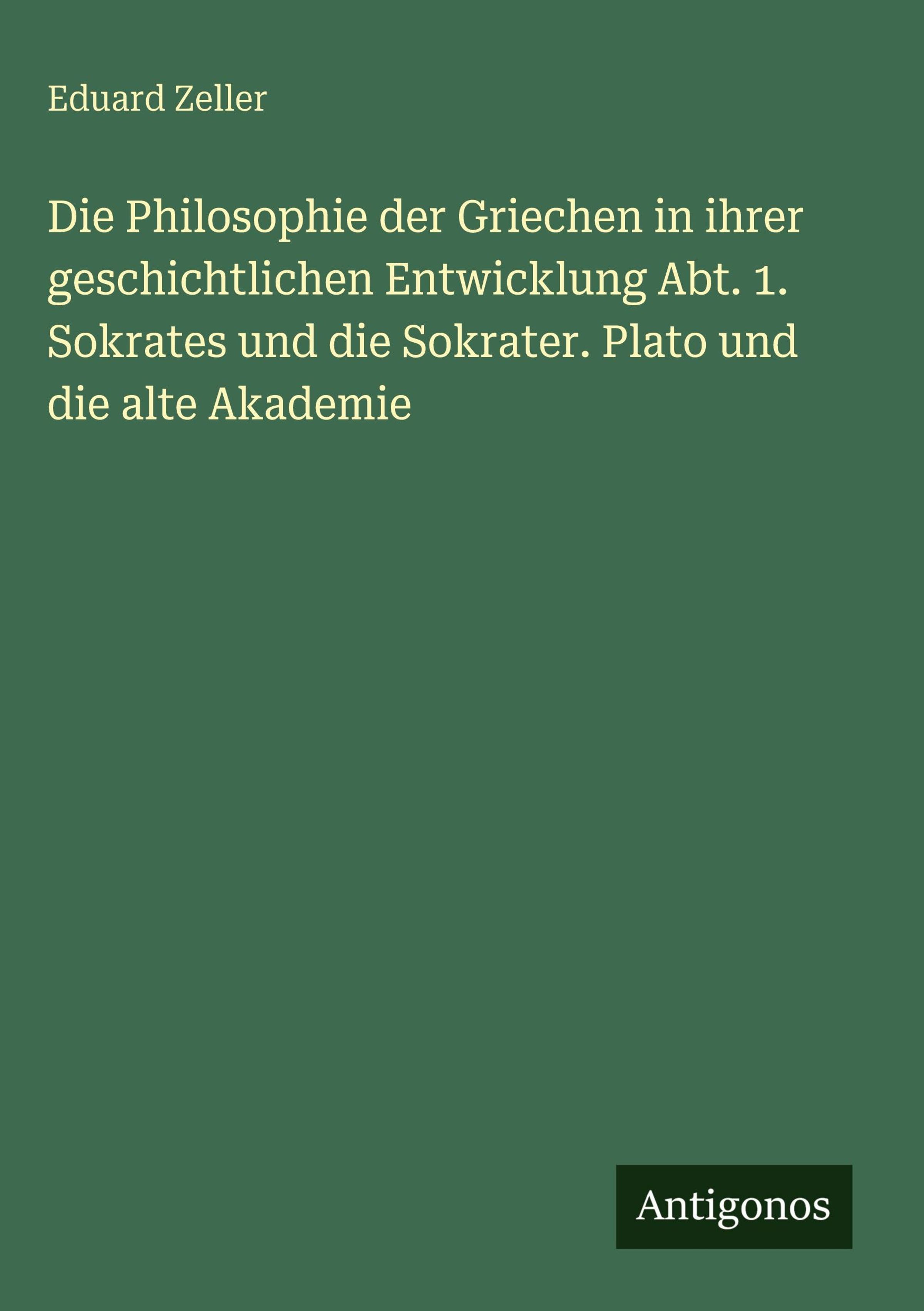 Die Philosophie der Griechen in ihrer geschichtlichen Entwicklung Abt. 1. Sokrates und die Sokrater. Plato und die alte Akademie