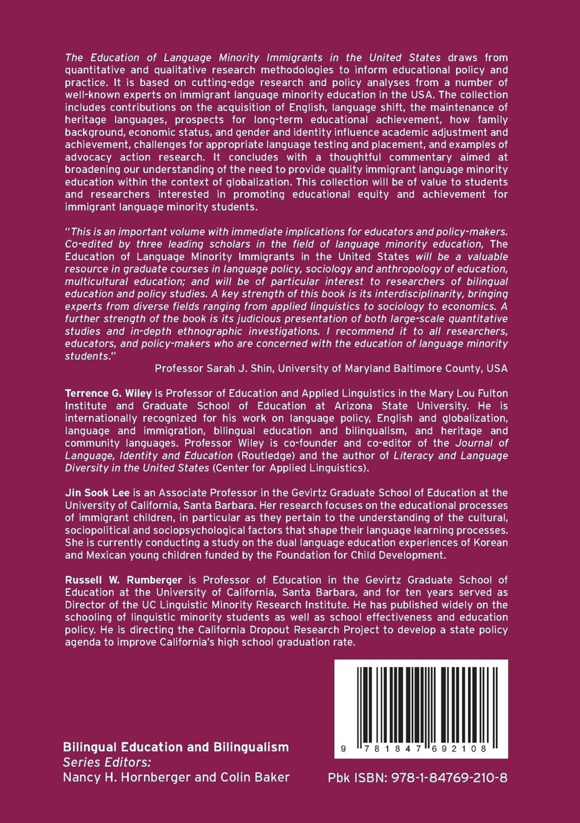 This book focuses on educational language minority immigrant issues in the US. It explores factors predicting language proficiency, the role of language and identity in the lives of immigrant language minority youth, and issues of educational policy related to this group.