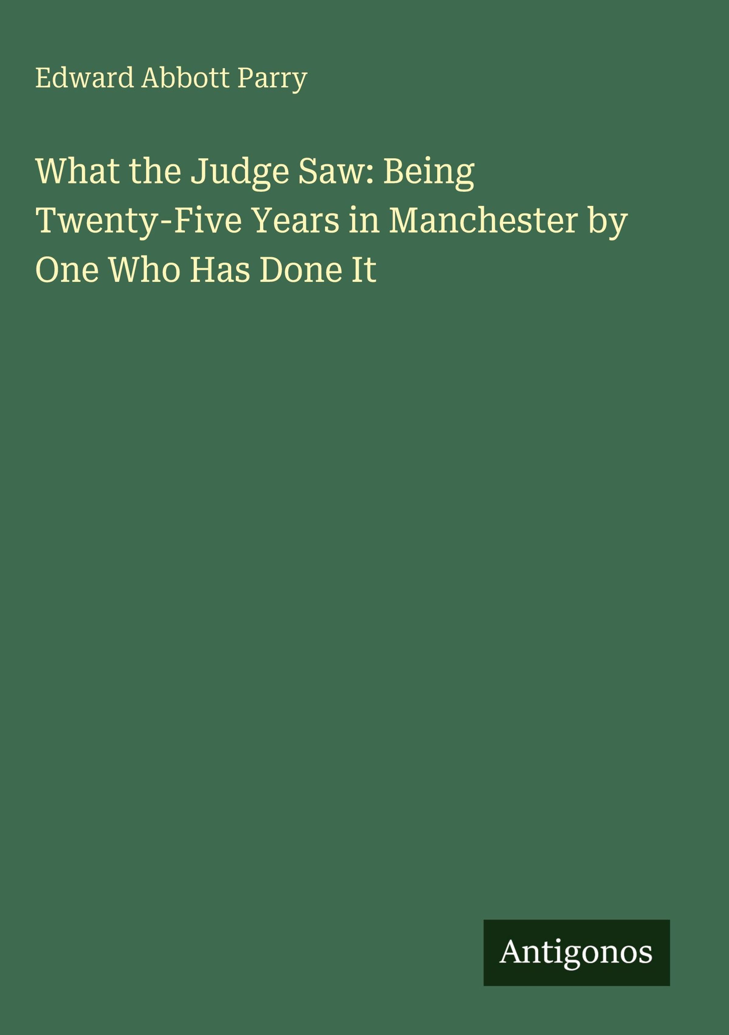 Edward Abbott Parry: What the Judge Saw: Being Twenty-Five Years in Manchester by One Who Has Done It, Gebunden
