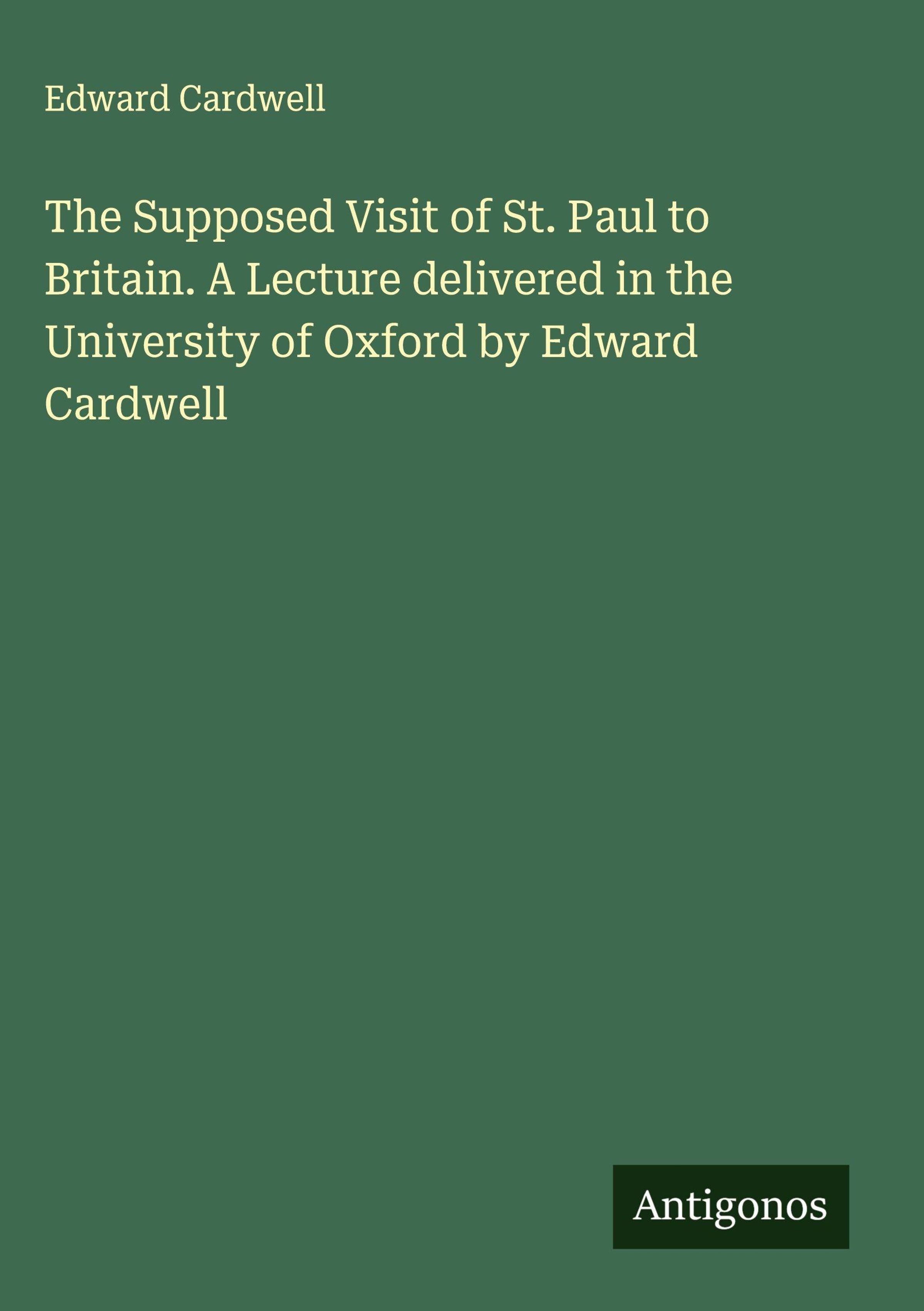 The Supposed Visit of St. Paul to Britain. A Lecture delivered in the University of Oxford by Edward Cardwell