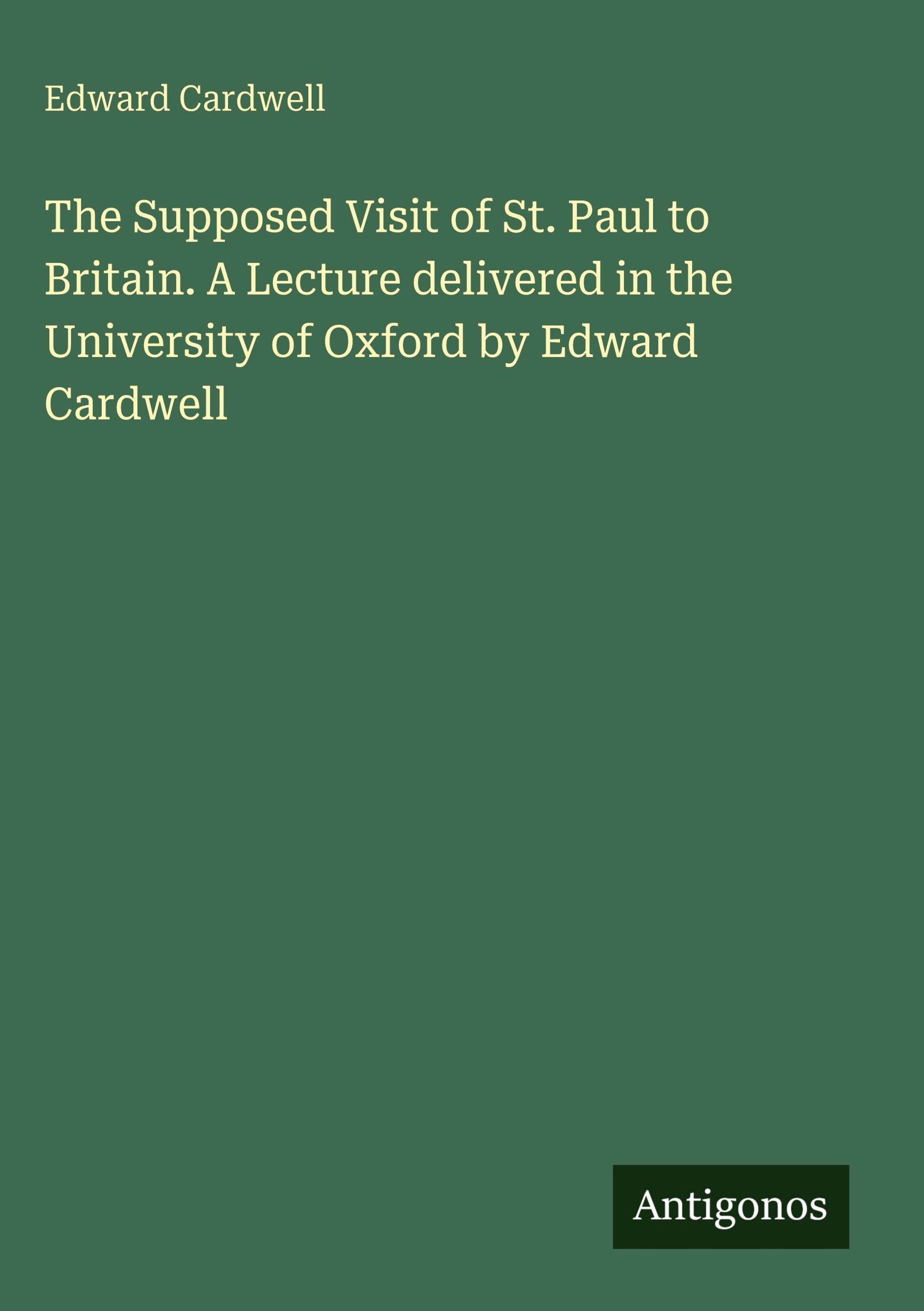 The Supposed Visit of St. Paul to Britain. A Lecture delivered in the University of Oxford by Edward Cardwell
