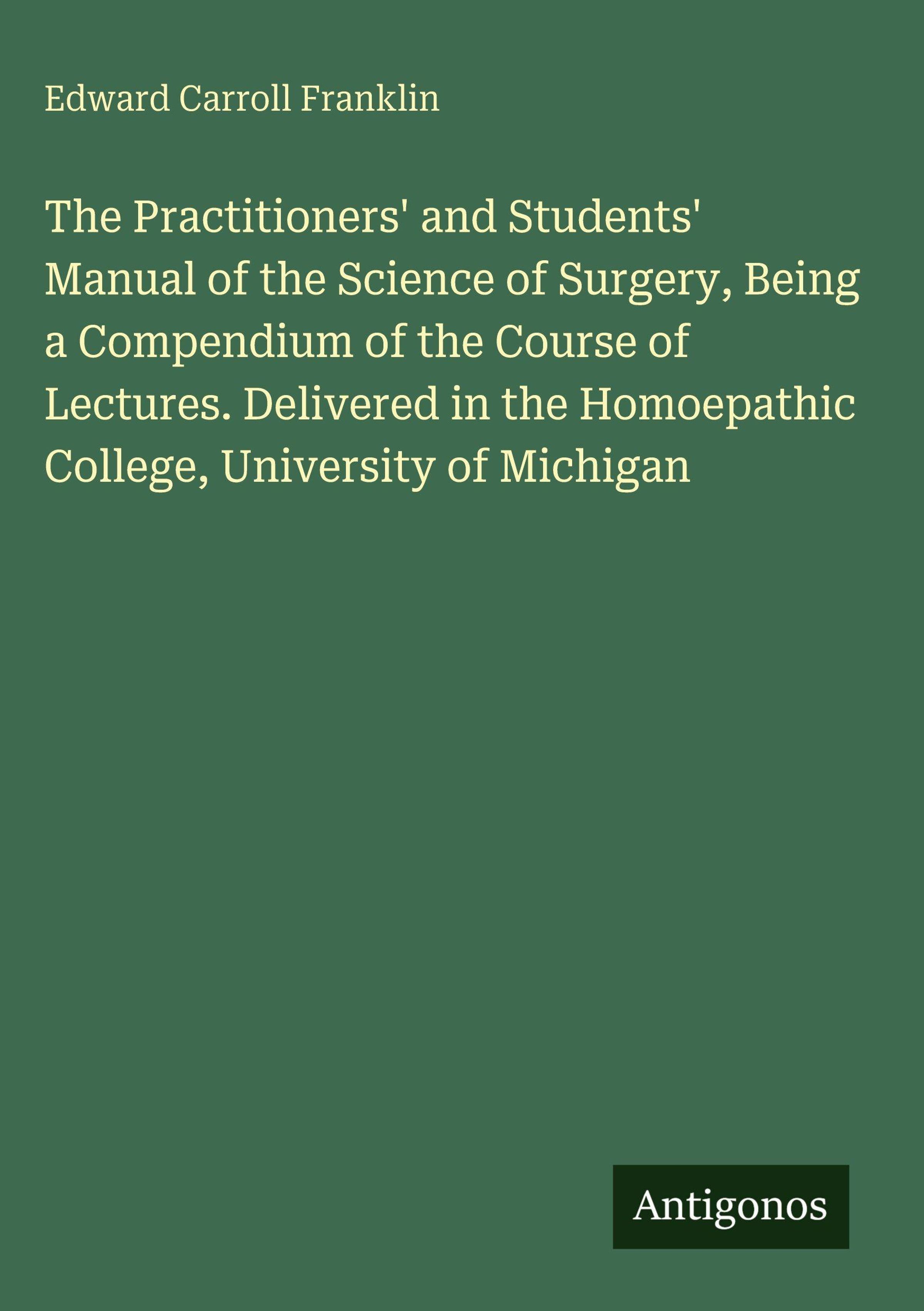 The Practitioners' and Students' Manual of the Science of Surgery, Being a Compendium of the Course of Lectures. Delivered in the Homoepathic College, University of Michigan