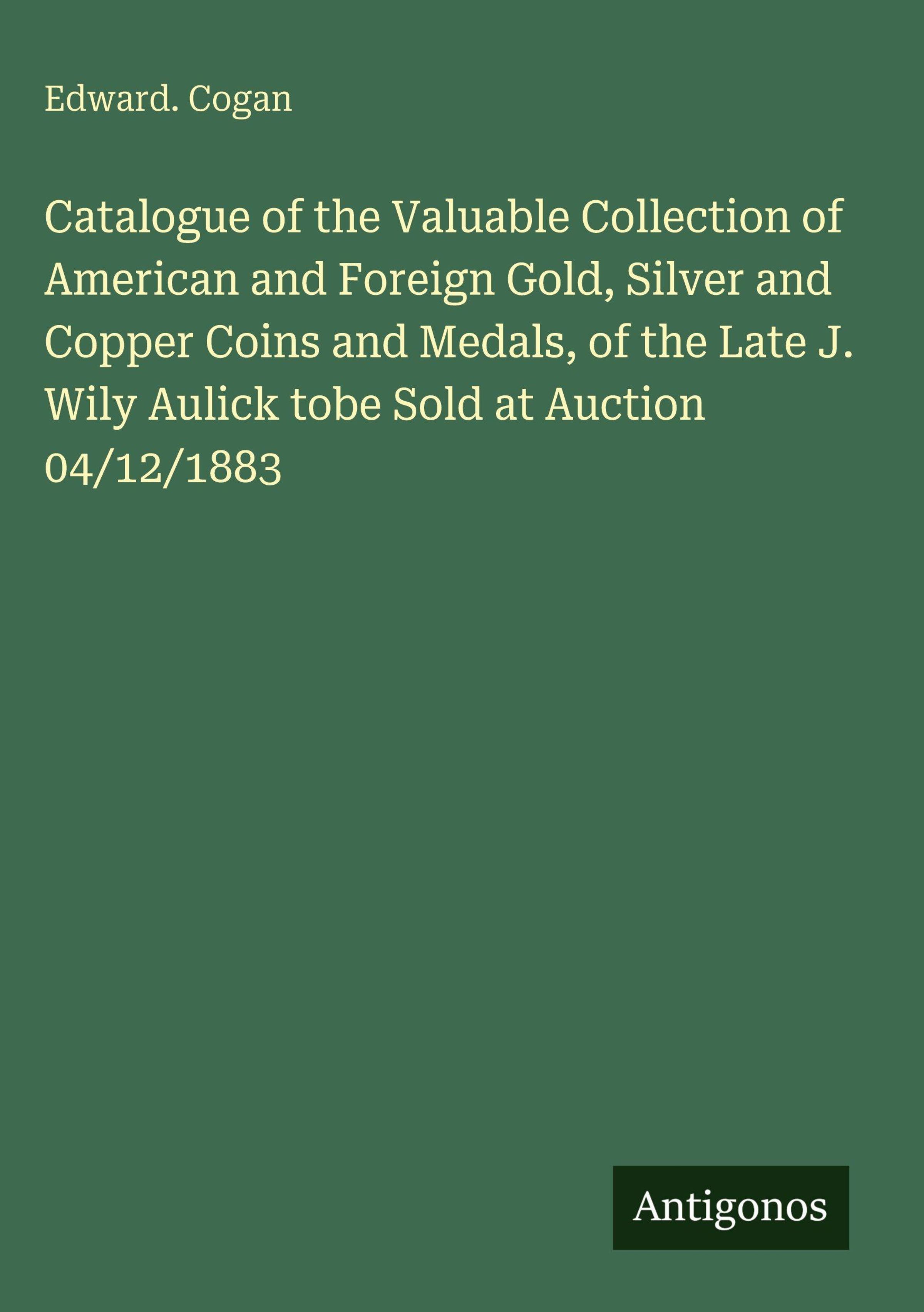 Catalogue of the Valuable Collection of American and Foreign Gold, Silver and Copper Coins and Medals, of the Late J. Wily Aulick tobe Sold at Auction 04/12/1883