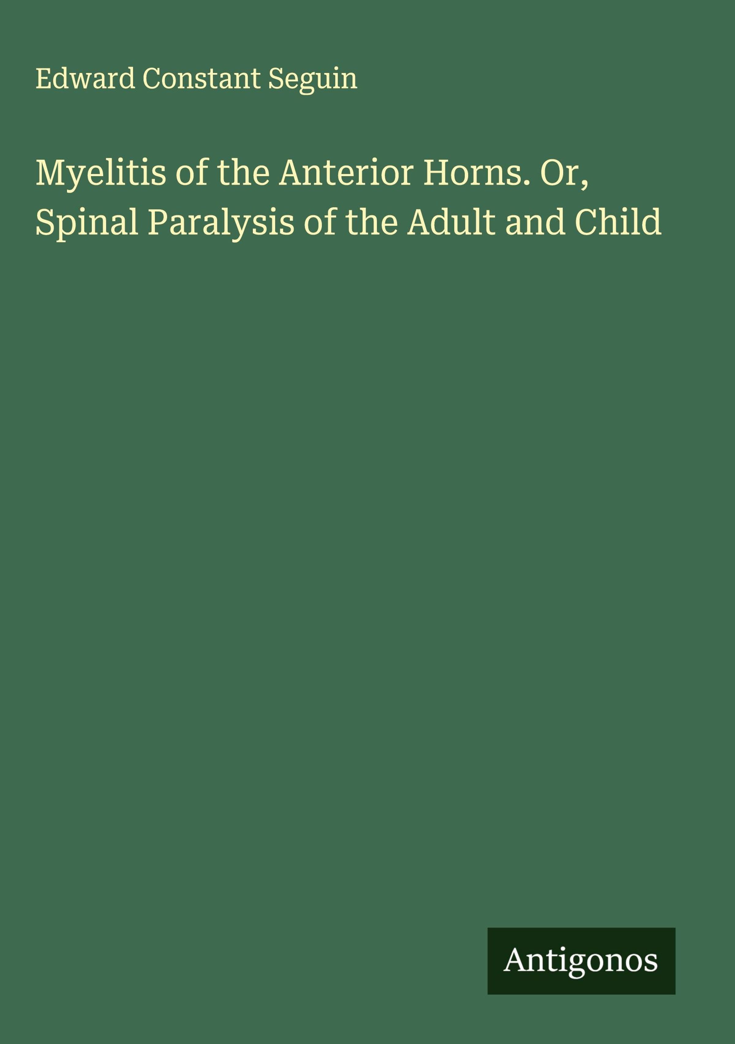 Edward Constant Seguin: Myelitis of the Anterior Horns. Or, Spinal Paralysis of the Adult and Child, Gebunden