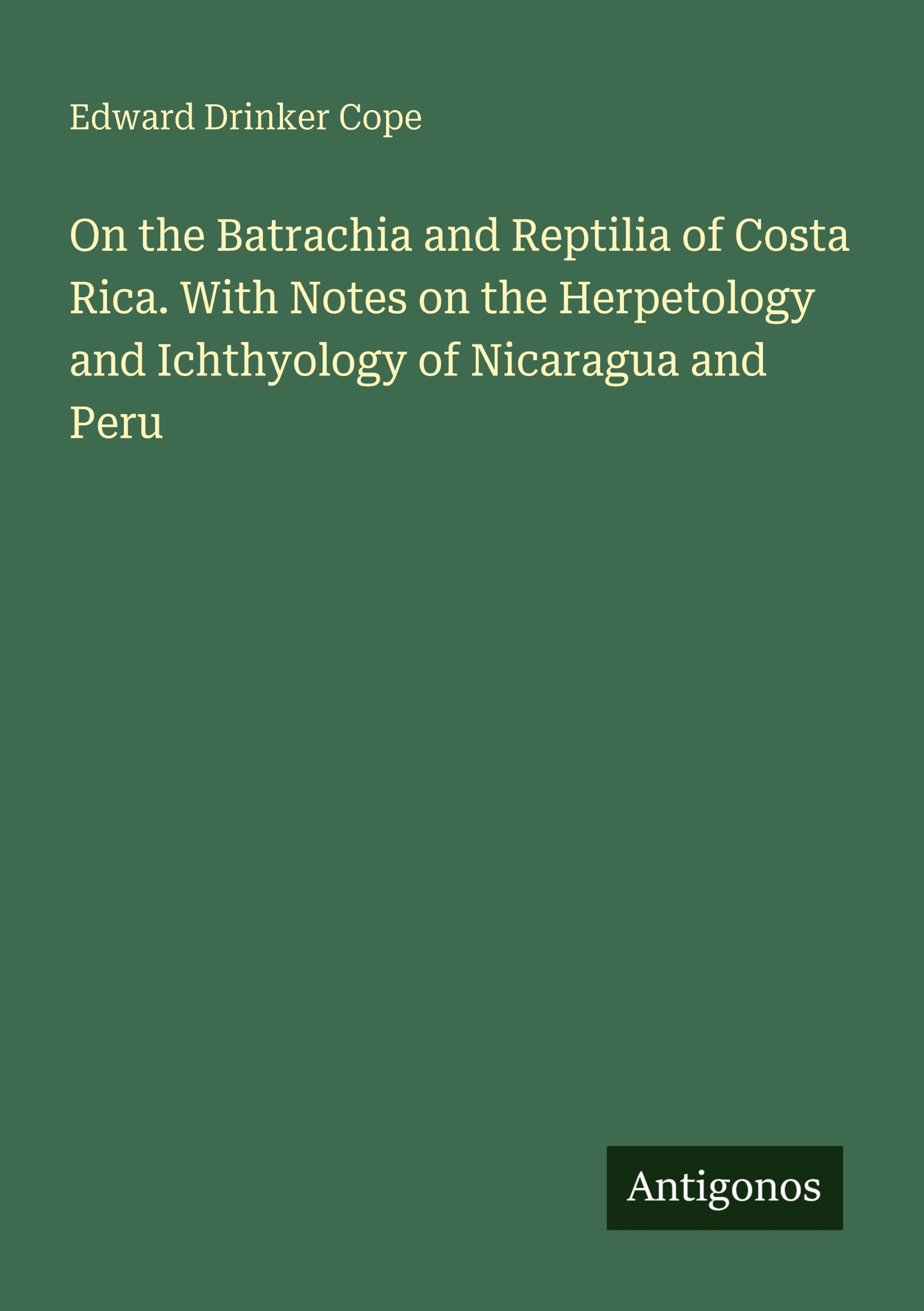 On the Batrachia and Reptilia of Costa Rica. With Notes on the Herpetology and Ichthyology of Nicaragua and Peru