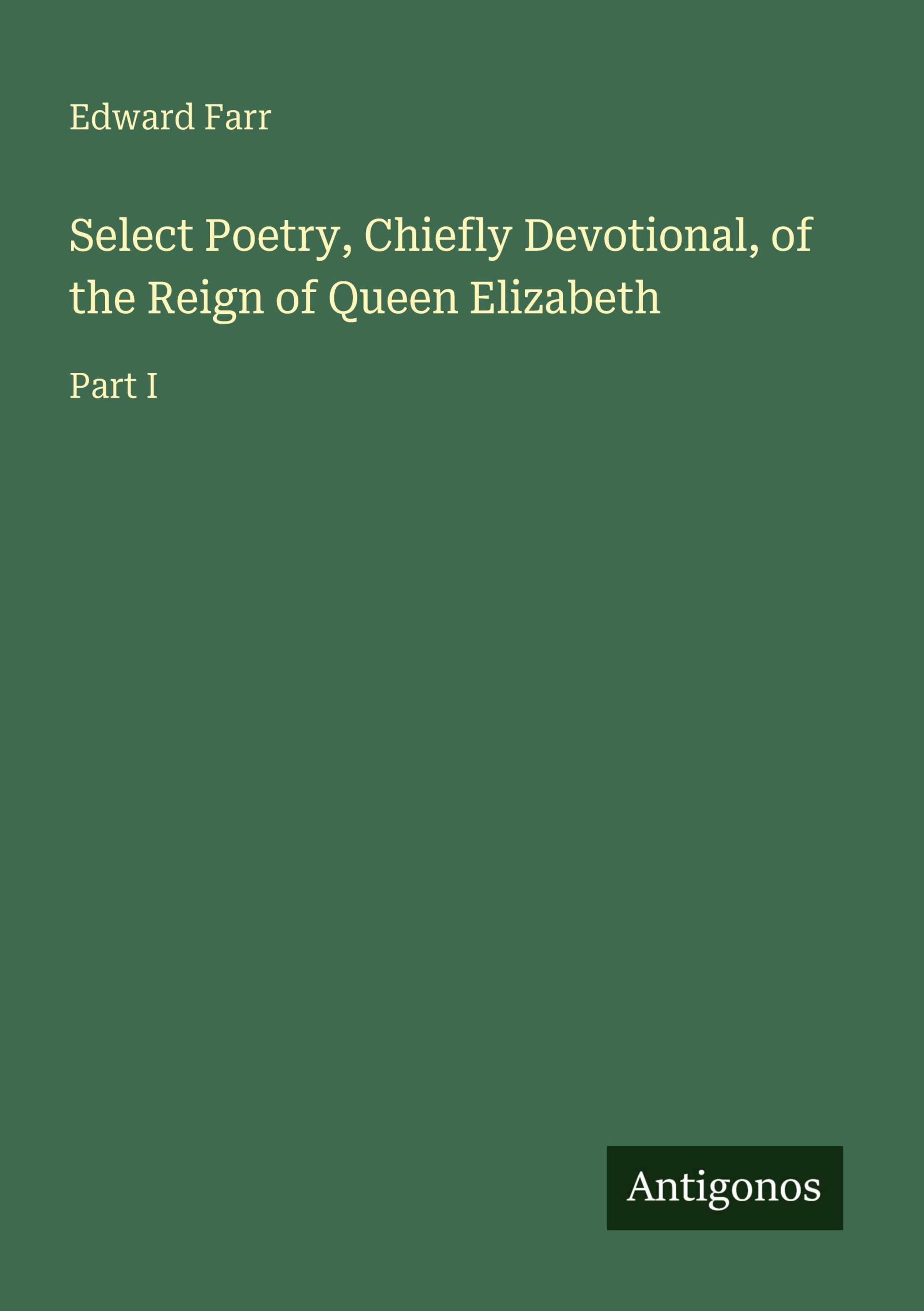 Edward Farr: Select Poetry, Chiefly Devotional, of the Reign of Queen Elizabeth, Kartoniert / Broschiert