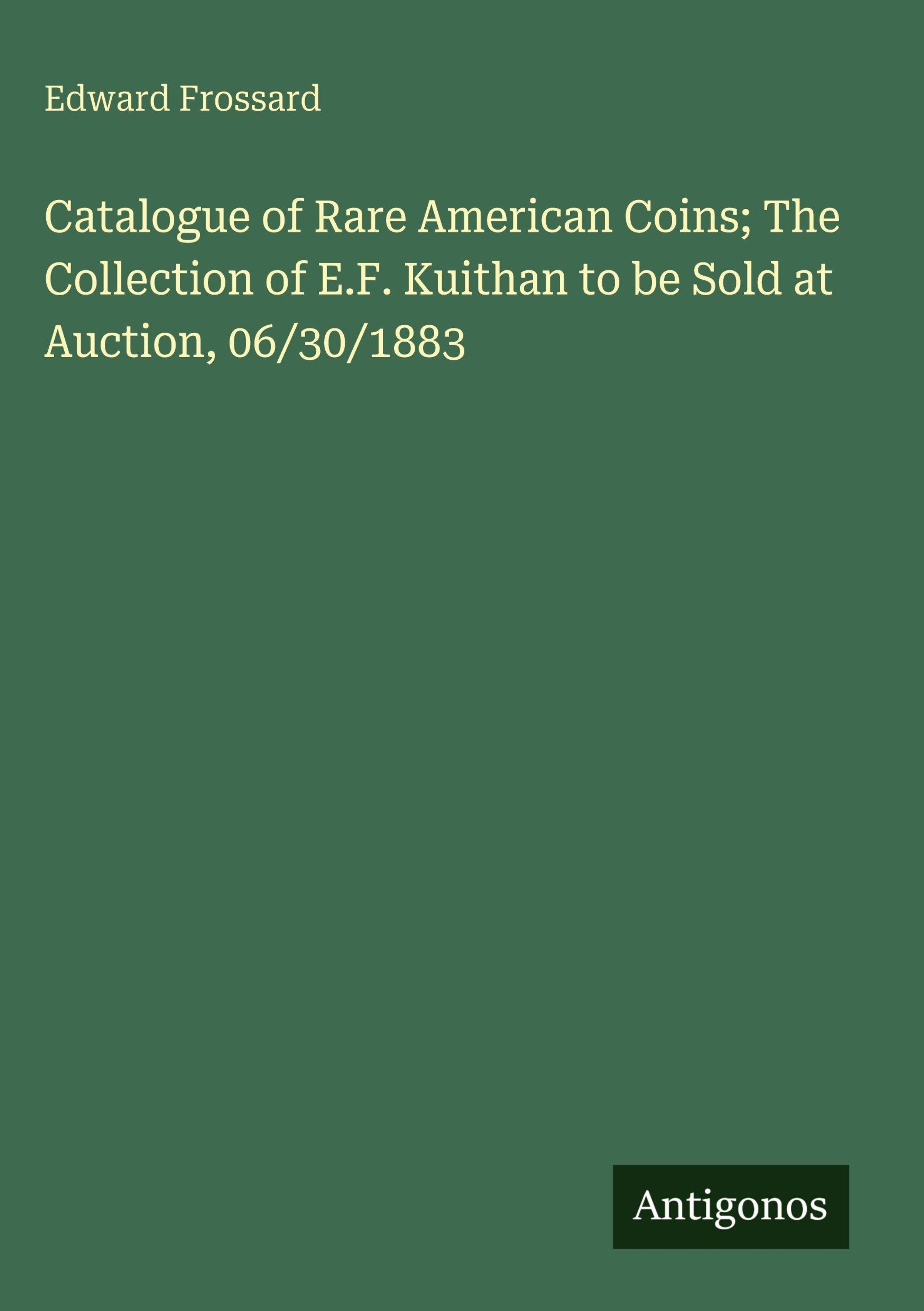 Edward Frossard: Catalogue of Rare American Coins; The Collection of E.F. Kuithan to be Sold at Auction, 06/30/1883, Gebunden