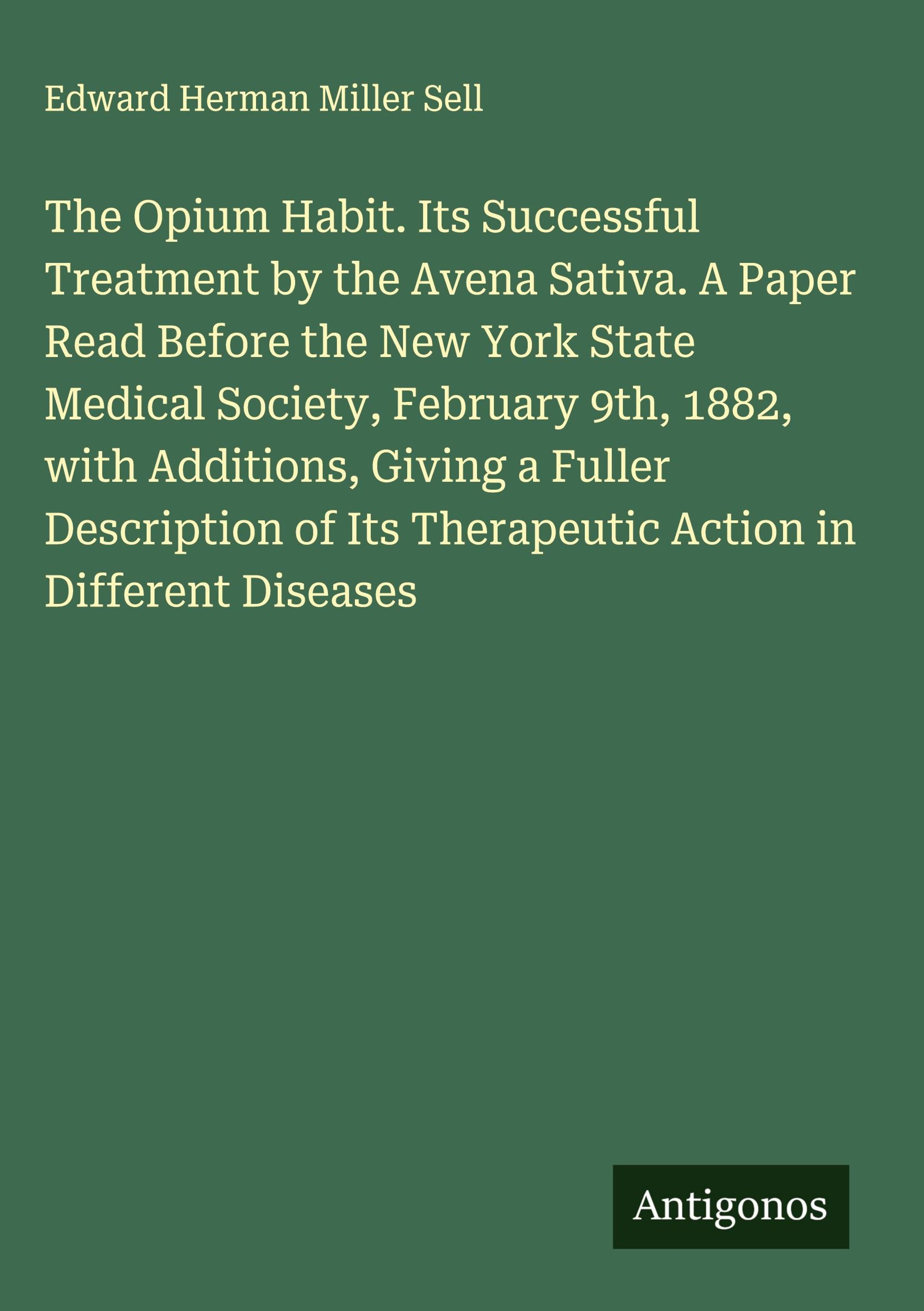 Edward Herman Miller Sell: The Opium Habit. Its Successful Treatment by the Avena Sativa. A Paper Read Before..., Gebunden