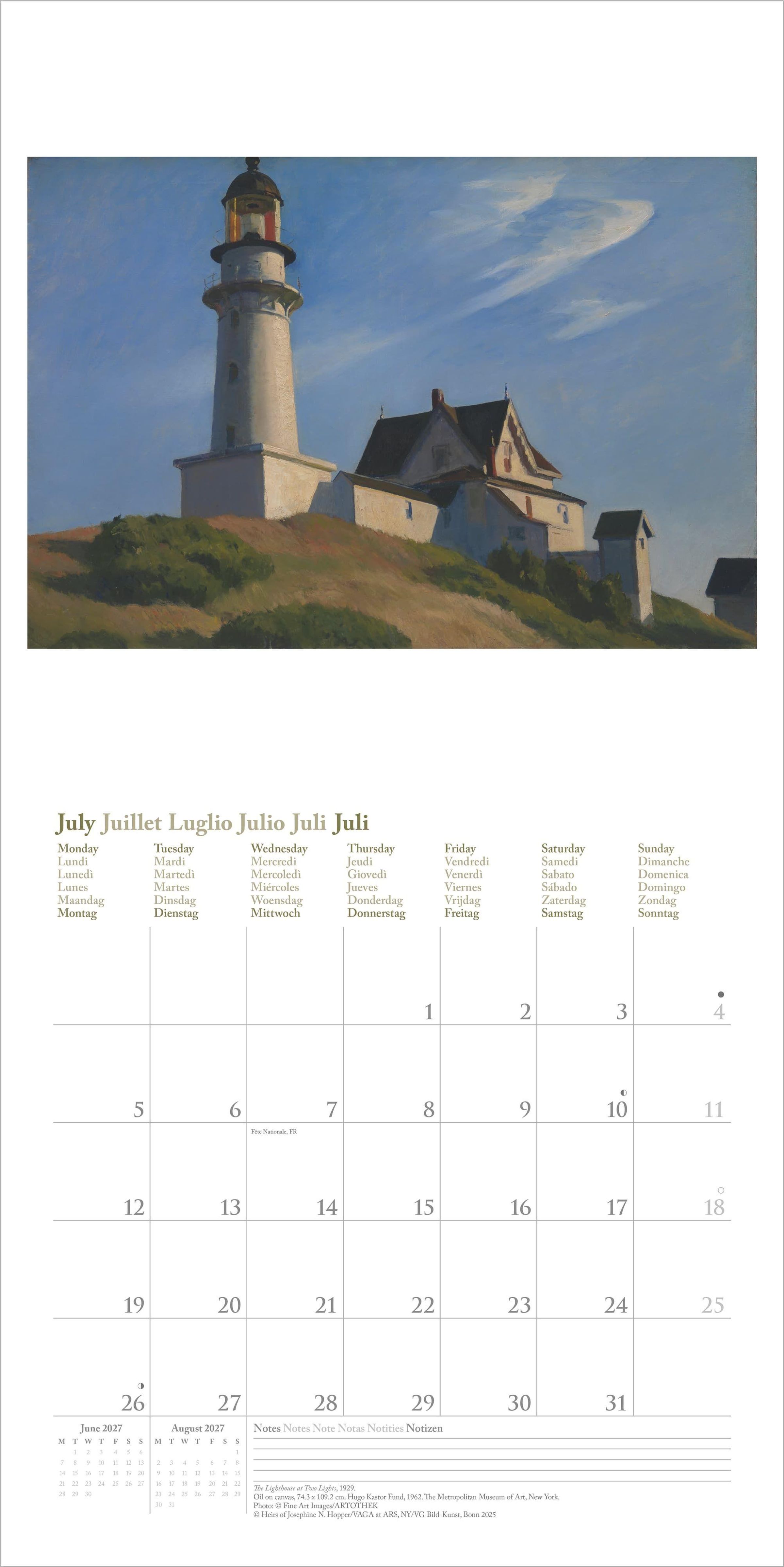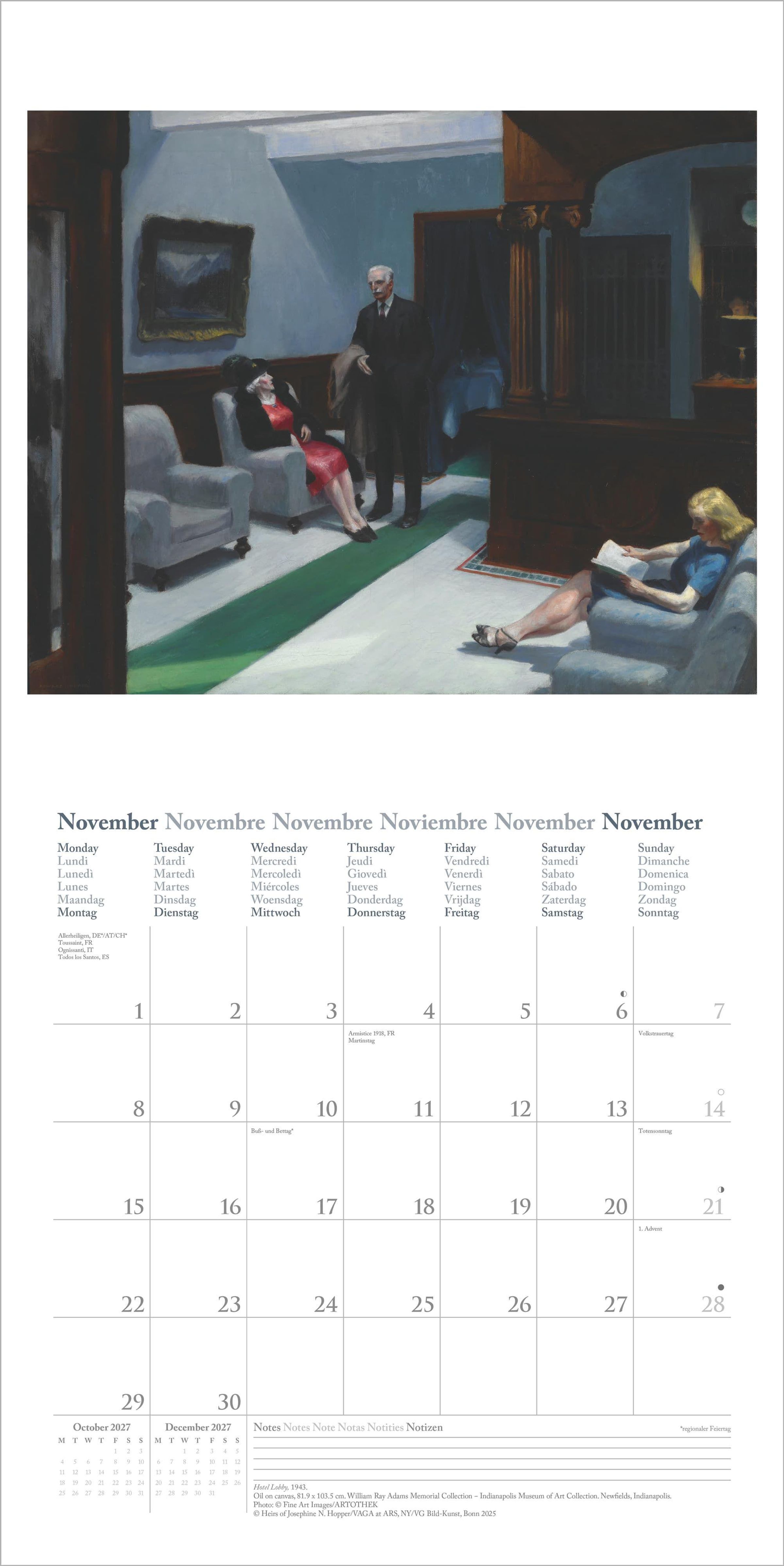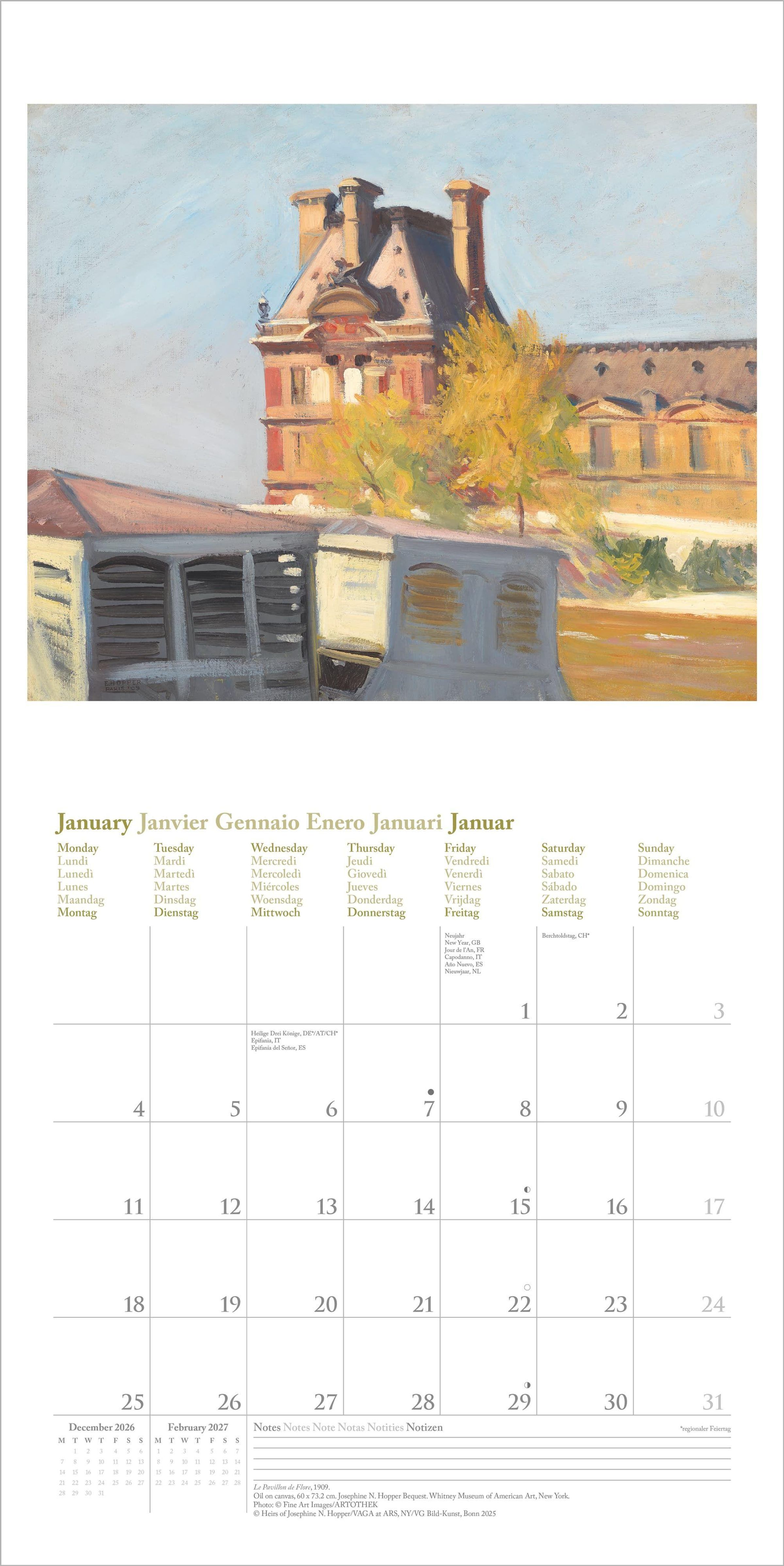 Dieser hochwertige Kunstkalender vereint Hoppers eindringliche Bildsprache mit praktischer Funktionalität -- ein inspirierender Begleiter für das Jahr 2027 und ein stilvolles Highlight für jede Wand.
