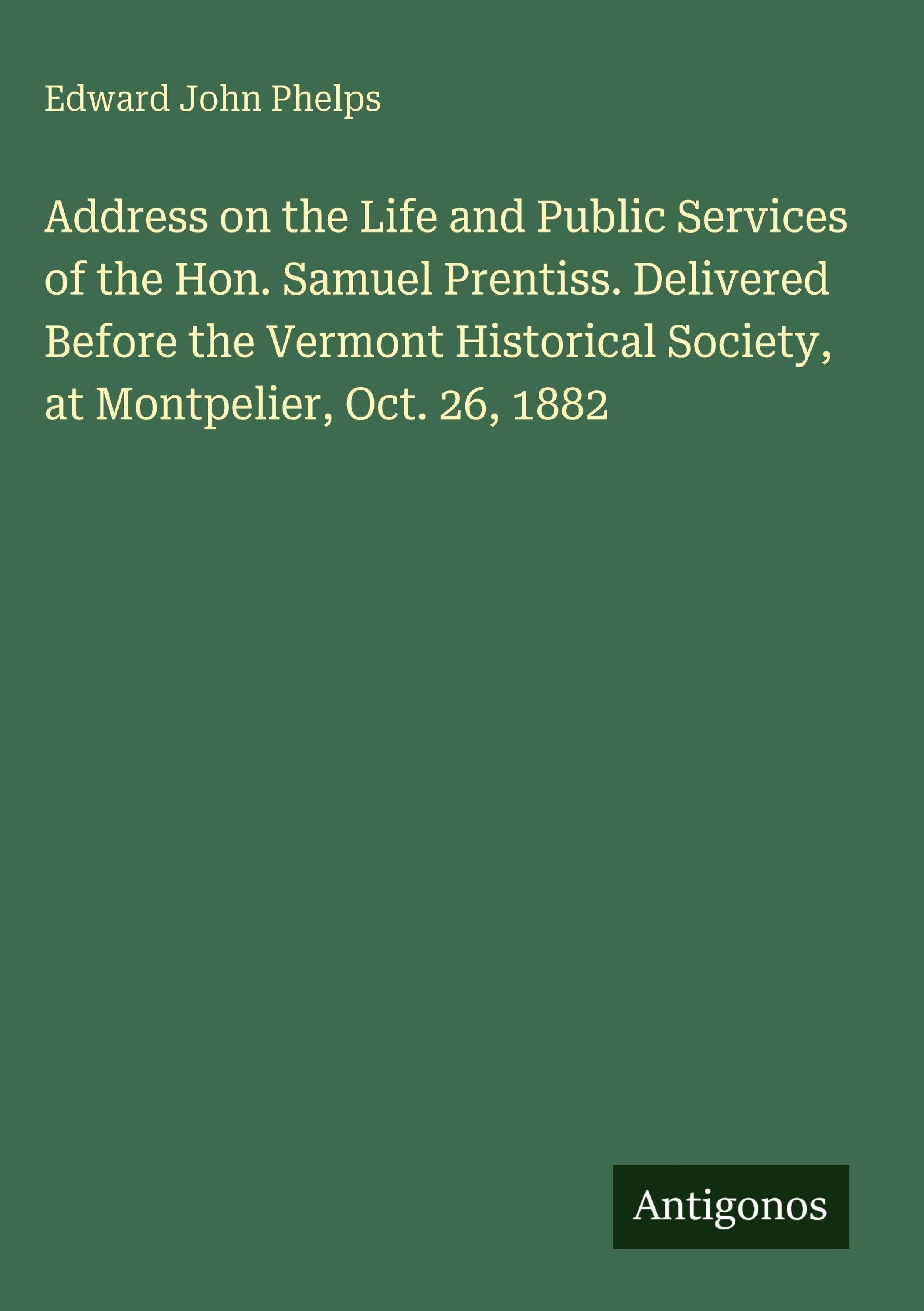 Address on the Life and Public Services of the Hon. Samuel Prentiss. Delivered Before the Vermont Historical Society, at Montpelier, Oct. 26, 1882