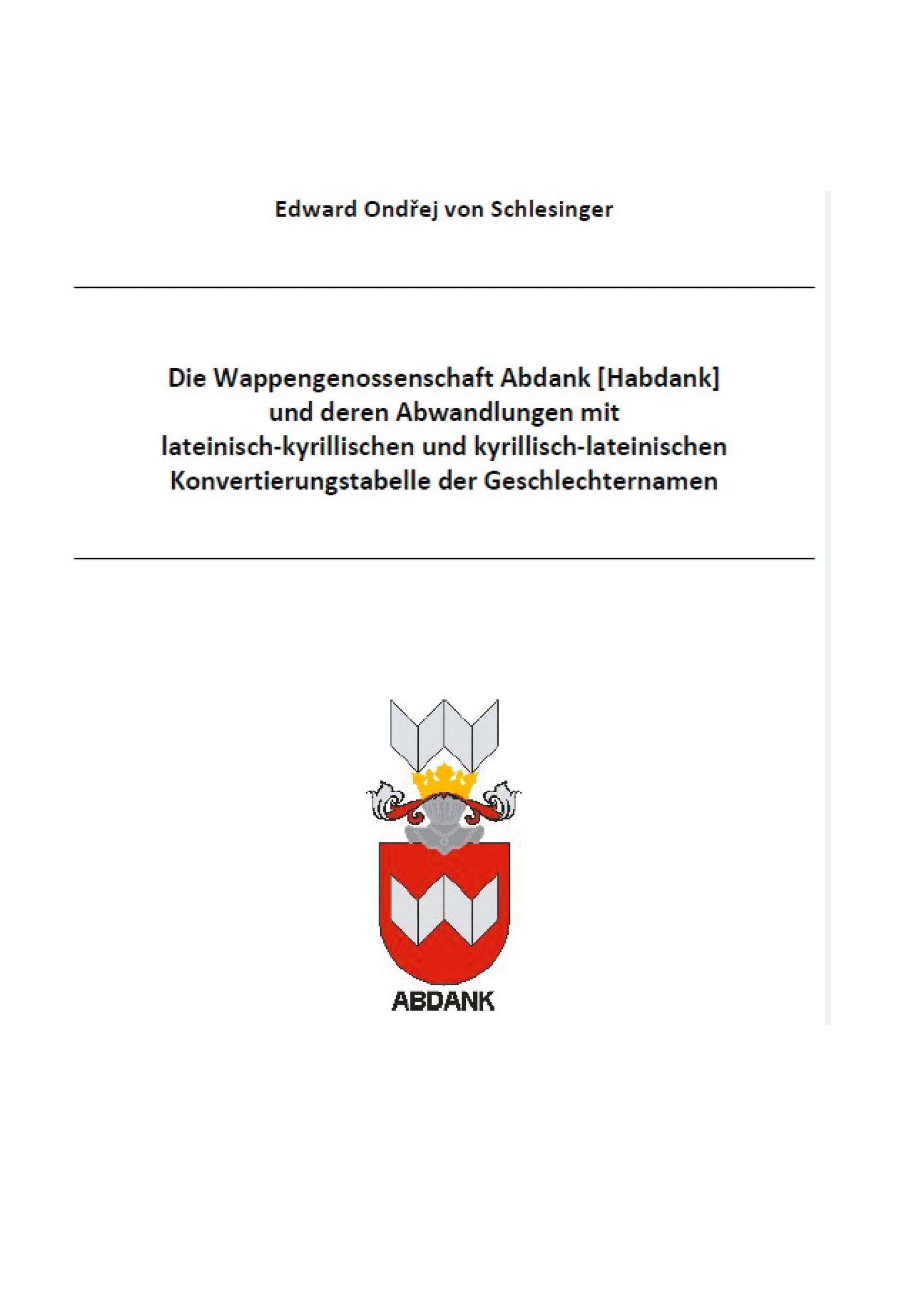 Die Wappengenossenschaft Abdank und deren Abwandlungen mit lateinisch kyrillischen und kyrillisch lateinischen Konvertierungstabelle der Geschlechternamen