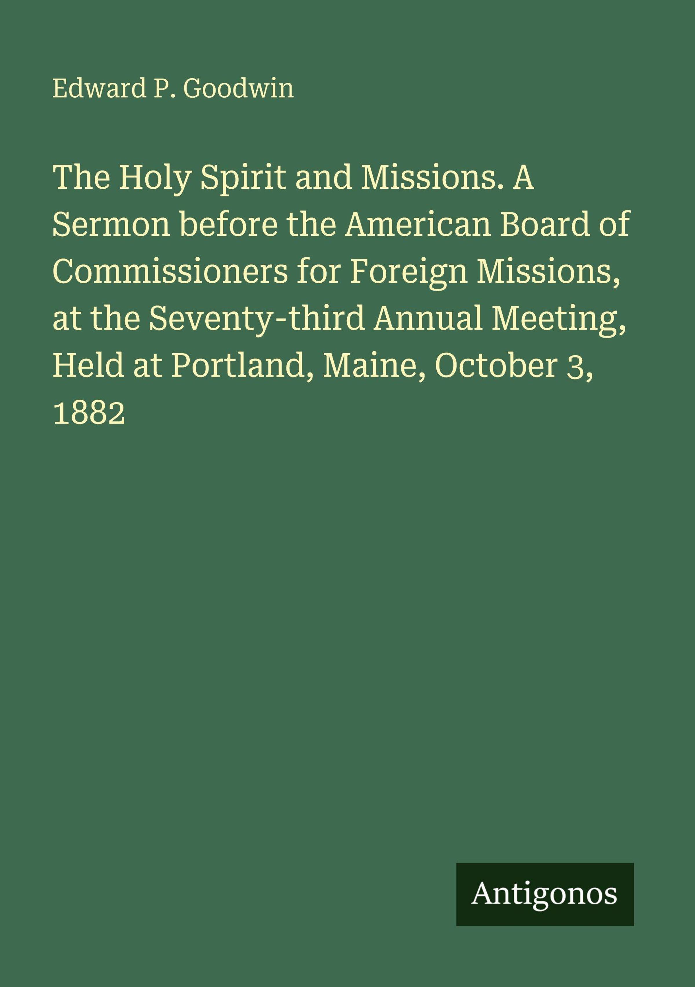 Edward P. Goodwin: The Holy Spirit and Missions. A Sermon before the American Board of Commissioners for Foreign..., Kartoniert / Broschiert