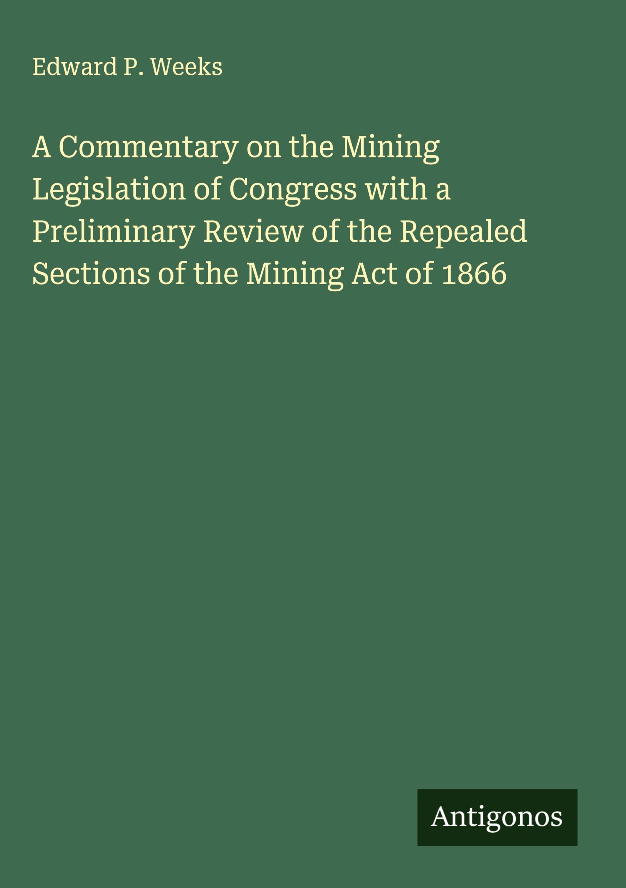 Edward P. Weeks: A Commentary on the Mining Legislation of Congress with a Preliminary Review of the Repealed..., Gebunden